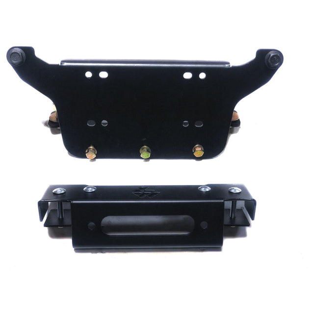 This winch mount comes powder coated black. It is made for the R and the X edition that have the stock bumper. They can be used with 3500, 4500, and 5000 lb winch. The photos shown are a 4500 lb winch.