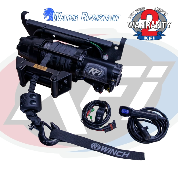 A top of the line, stylish, yet extremely durable KFI Assault 5000LB Synthetic Cable Wide Winch. The Plug-N-Play Winch Kit comes with the Winch and Electrical Contactor pre-assembled on a winch mount along with a POM Roller Fairlead and Split Cable Hook Stopper. The kit includes a Backlit Dash-Rocker Switch and a Corded Hand Remote to control your winch. Please see application chart below for fitment on your machine and models that will require a fairlead adaptor.