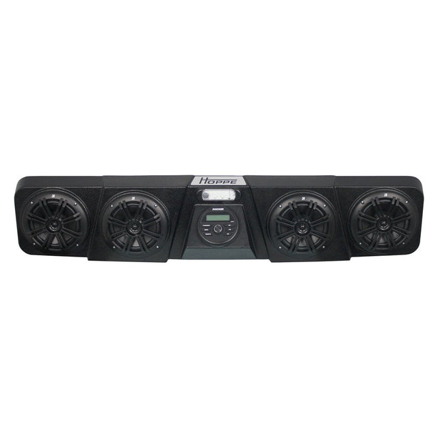 - Photos of units above may still display older KMC2 face. All Hoppe off-road audio accessories ship with newest KMC2 version featuring turning knob-style center control pictured above/right and matte black faceplate.