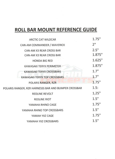 Universal UTV Bracket: Polaris, Razor, Rhino, Yamaha