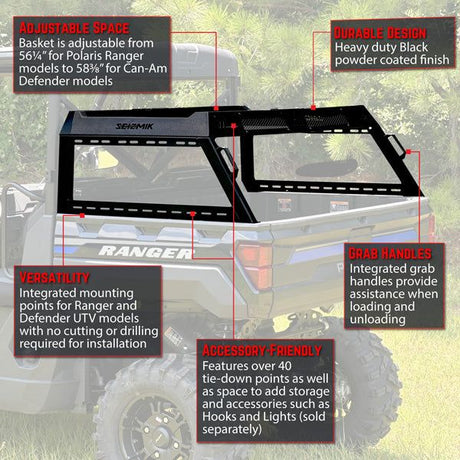 - Seizmik - Can Am Defender / Polaris Ranger Bed Rack Basket Regular price $717.99Unit price /Unavailable