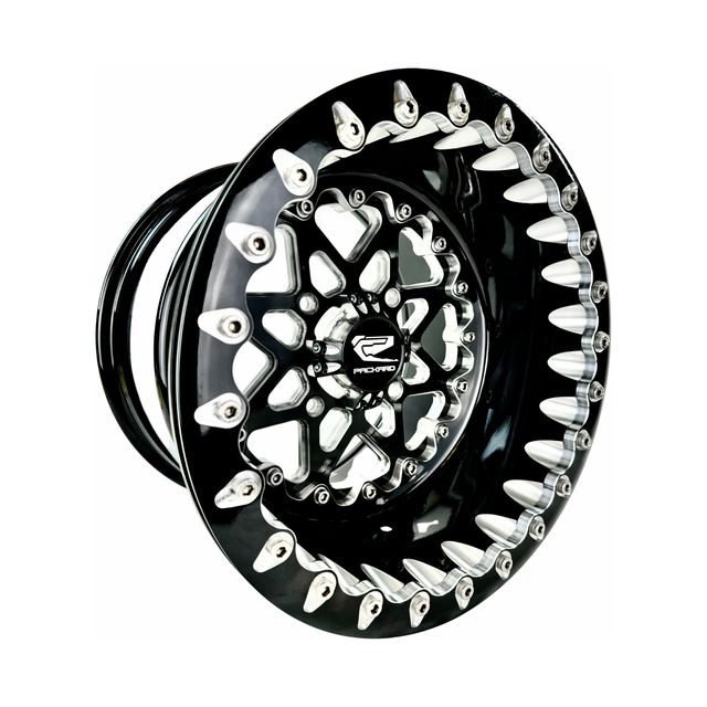 Ultralight Flow Forged Beadlock wheels are designed to work with powersports tires for offroad use only. We do not guarantee the fitment of any automotive tire. If you choose to to run an automotive tire do so at your own risk. Automotive tires may require customers to source longer beadlock ring bolts to accommodate different bead thicknesses.