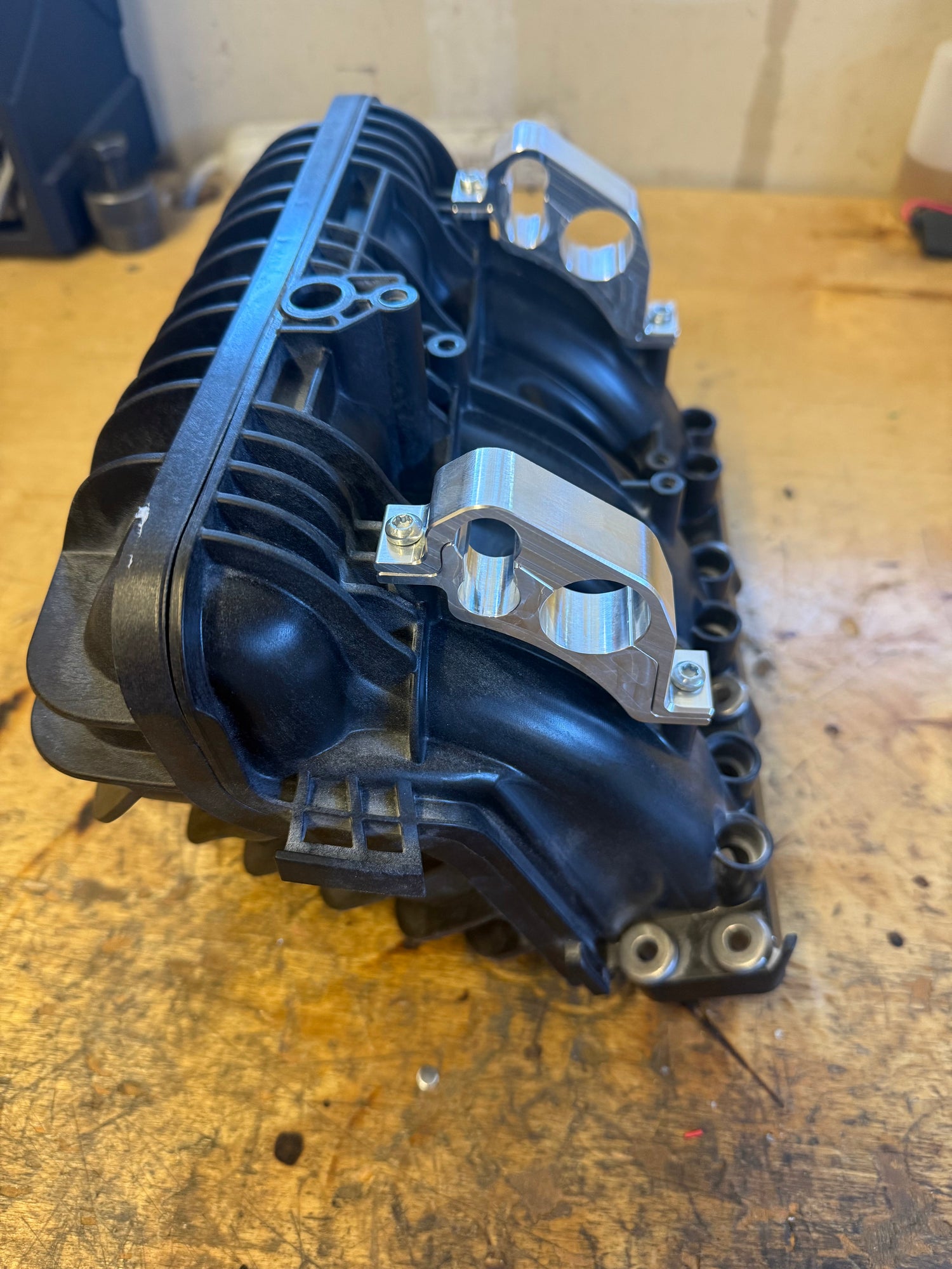 Reduce the clutter on top of your Maverick R plenum (Intake Manifold) with these billet aluminum hose retainer.  Allows for better access to the parts on top of the engine like the fuel rail and injectors.  Design to allow for easy installation in a small space with a driver or a rachet.