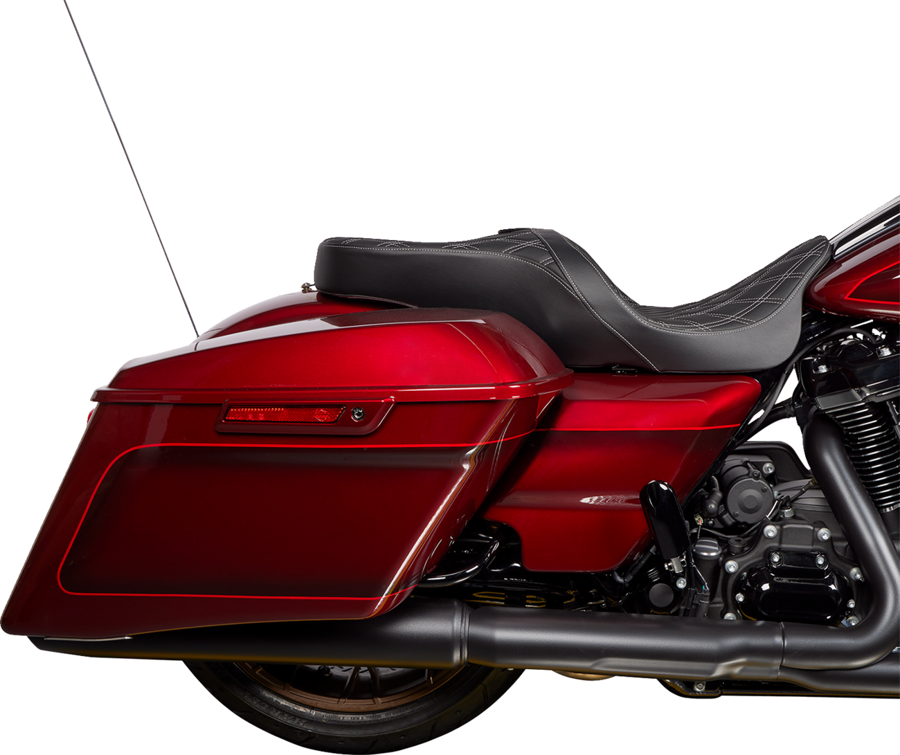 DRAG SPECIALTIES SEATS Freedom Seat with Vinyl Cover for Harley-Davidson FLH 2009-2023, Double Diamond Silver Stitch - Part 0801-1482