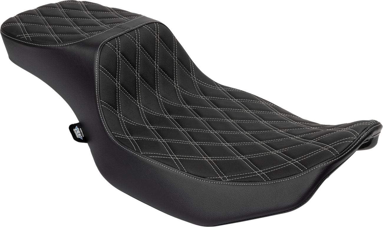 Drag Specialties Seats Performance Predator 2-Up Seat with Extended Reach for Harley-Davidson Touring Models – Silver Double Diamond Stitch, Part #4691C