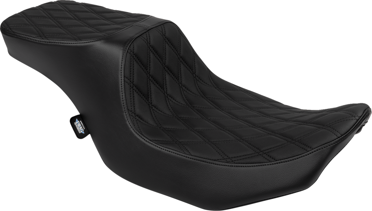 The Drag Specialties Seats Predator 2-Up Seat offers a combination of style and comfort specifically designed for Harley-Davidson FLTR and FLHX models from 2023 to 2024. Crafted with automotive-grade vinyl featuring a double diamond black stitch pattern, this seat enhances the look of your motorcycle while providing durability for long rides. Its tall driver support and contoured seating area ensure maximum comfort, making it suitable for extended cruising sessions. The narrow front design improves leg clearance, contributing to a more natural riding position.