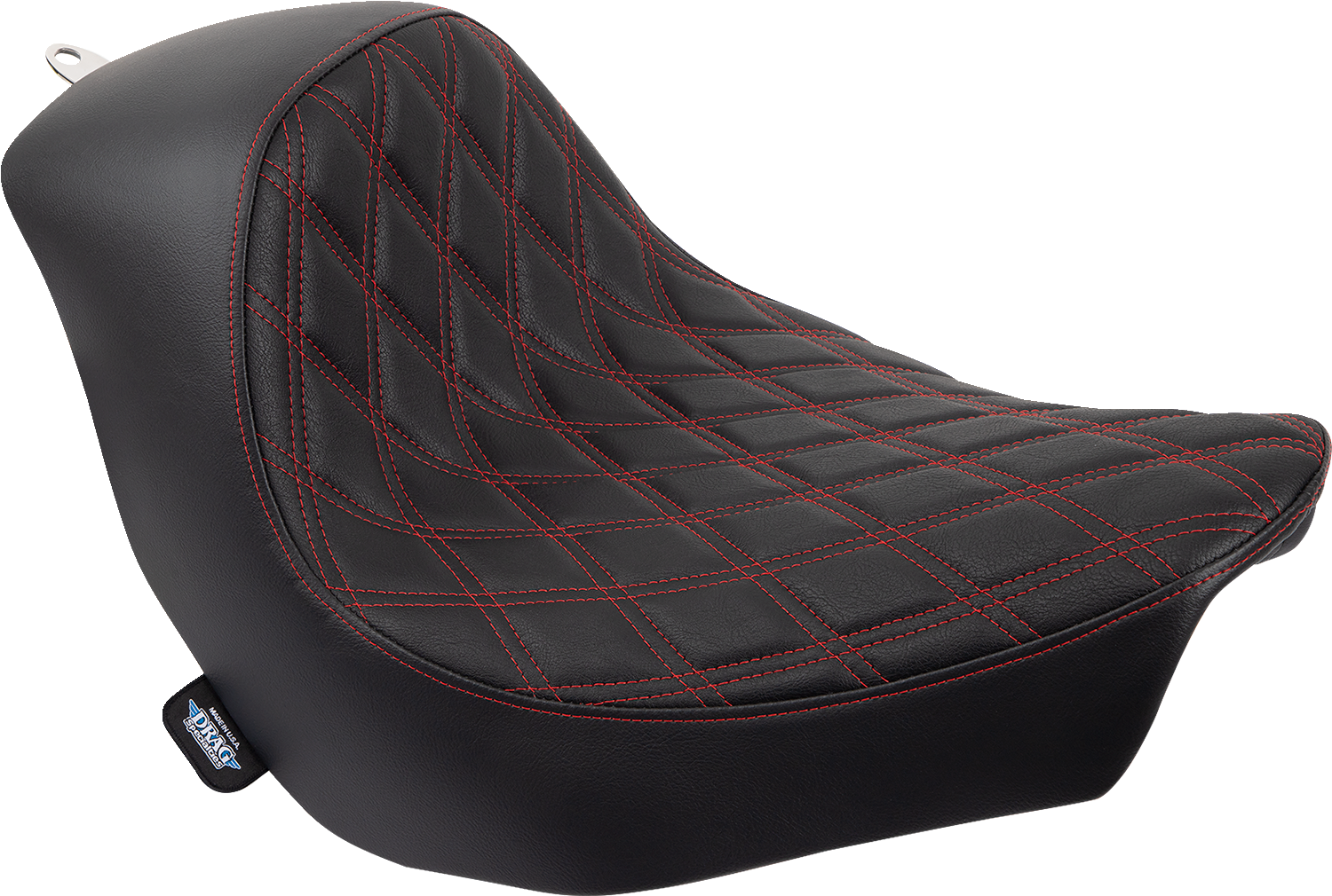 DRAG SPECIALTIES SEATS Solo Seat - Double Diamond with Red Stitching for Harley FL/FX 2018-2023