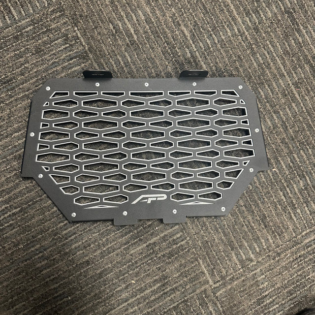The Agency Power Premium Grill is a stylish addition to your Polaris RZR Turbo or 1000. The replacement grill is constructed from an inner and outer assembly that has been precision cut out of stainless steel. The outer grill is powder coated in a textured black and features the Agency Power AP logo in the bottom center. The inner grill has been designed to be slightly offset of the outer grill to show off the brilliant color and make the AP logo pop. These are also powder coated for a durable finish in several colors. These 2 pieces are held together with rivets which give it that industrial look. The grill easily fits into place of the stock unit with its tab design for a secure fit.