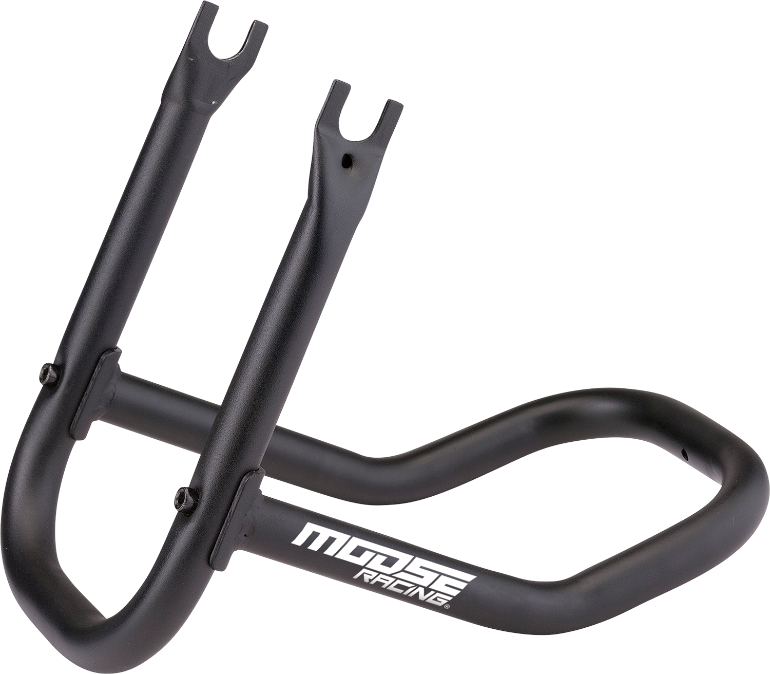 Made from sturdy steel tube with a durable black anodized finish and Moose Racing logo, Bikes' rear wheel fits conveniently between the vertical U shaped ends of the stand, Minimal assembly required