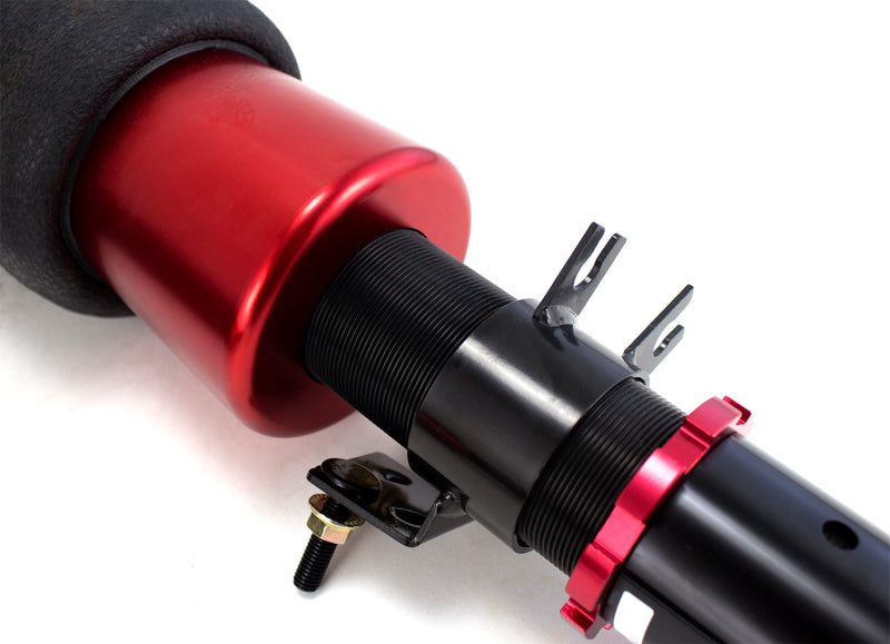 - Adjustable lower mounts allow ride height adjustments independently of air pressure, enabling precise stance tuning.
