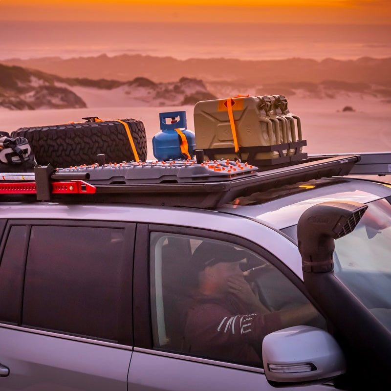 ARB's BASE Rack mount kit for the Land Cruiser 200 Series uses proven attachment methods to keep the roof rack as close as practical to the vehicle. It includes a wind deflector and is compatible with the rear OE mounted antenna. BASE Rack specific blade brackets suit the 84 x 51 in (PN 1770040) BASE Rack. By incorporating a dovetail extrusion around both the full perimeter and along each edge of the internal beams, the BASE Rack provides endless mounting and attachment options. Adding, removing and repositioning accessories and roof loads is quick and easy with the BASE Rack's dovetail system, making it easier to install and remove individual items without disturbing the whole load. Plus, unlike traditional roof rack channels, the BASE Rack dovetail extrusion won't collect dust and debris. Each BASE Rack accessory or fixture attaches to the rack with a simple clamp mount, including larger hardware such as Hi-Lift(TM) Jack mounts, rollers, recovery boards and even a BASE Rack custom light bar.