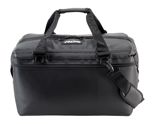 AO’s Sleek Carbon Series is one of the best-looking coolers on the market. The carbon fiber material matches perfectly to the interior of boats and side by sides. Made with a vinyl coated fabric that looks like carbon fiber, which is widely used in both the RV and marine industries. Insulated with a ¾” thick closed cell foam to keep drinks and food ice cold weekend long.  Lined with a welded TPU eco-friendly liner that is leak proof. Features four tie-down hooks to strap it down in any off-road vehicle.