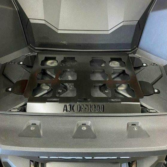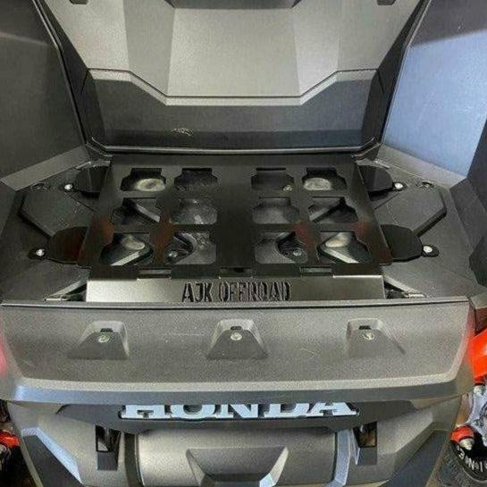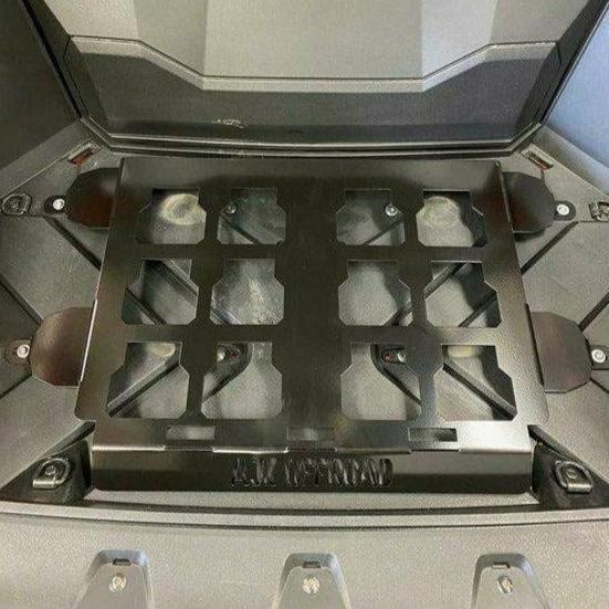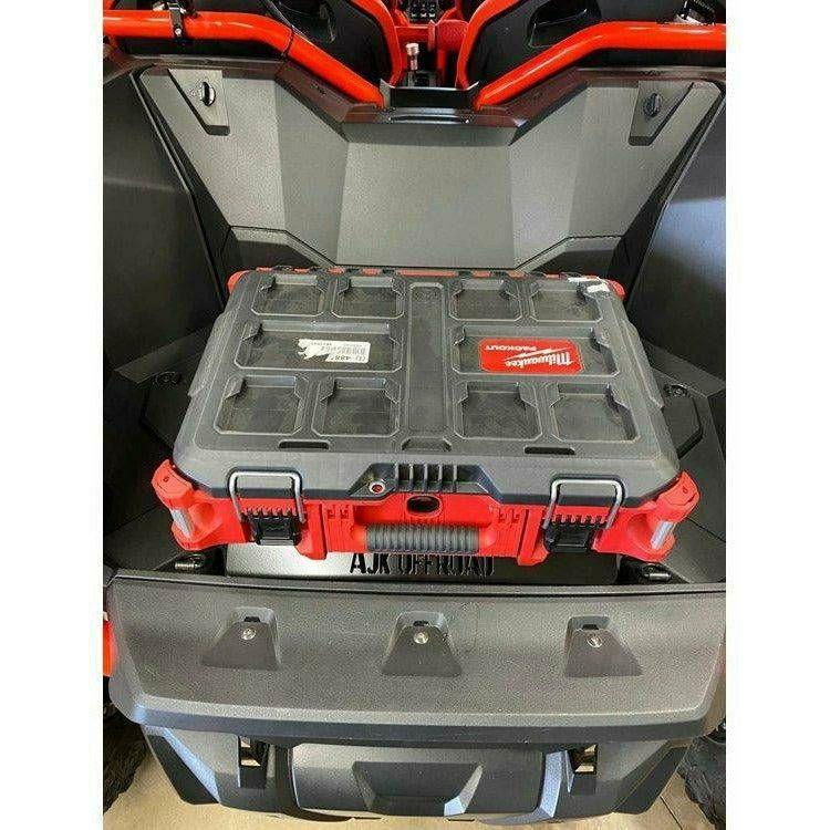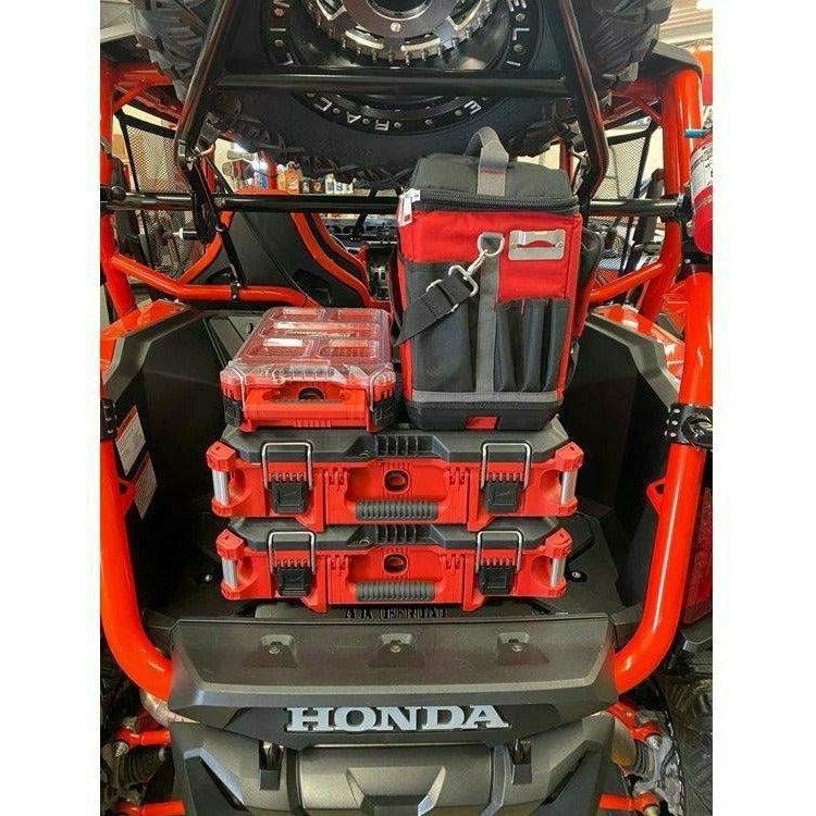 Our Honda Talon Milwaukee Packout Mount is the perfect storage solution. This mount uses existing mounting holes so no drilling is required. Simple remove four bolts and replace them with the supplied hardware. This is a very simple install. We CNC Laser cut our Milwaukee Packout Mount in house from 10 gauge P.O. steel then powder coat it black. All hardware is supplied.