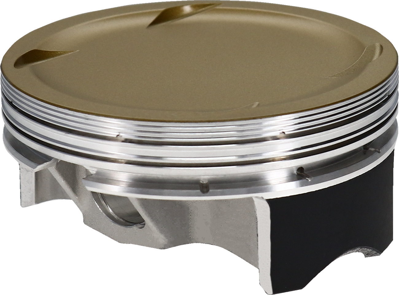 Propriety aligned grain flow forging technology for maximum tensile strength suited for high performance enviroment, Cermic crown coating protects the piston by reducing heat transfer, Internal and external bracing maintains optimized strength-to-weight ratio for longevity, 3D undercrown milling in non-critical areas reduces overall weight, Lateral gas ports and accumulator groove maintain power-producing ring seal even at high RPM and high boost, Tuff Skirt is a propriety, moly based dry film skirt coating that is applied in-house and reduces operating friction for better wear resistance, Offset pin reduces piston rock and minimize engine operating noise, Skirt notches for optimal clearance at the bottom dead center, Kit includes two pistons, premium ring pack, wrist pins and wire locks