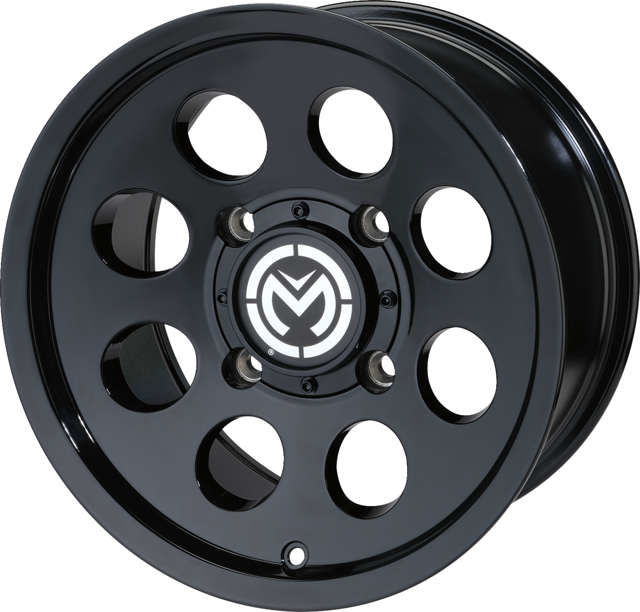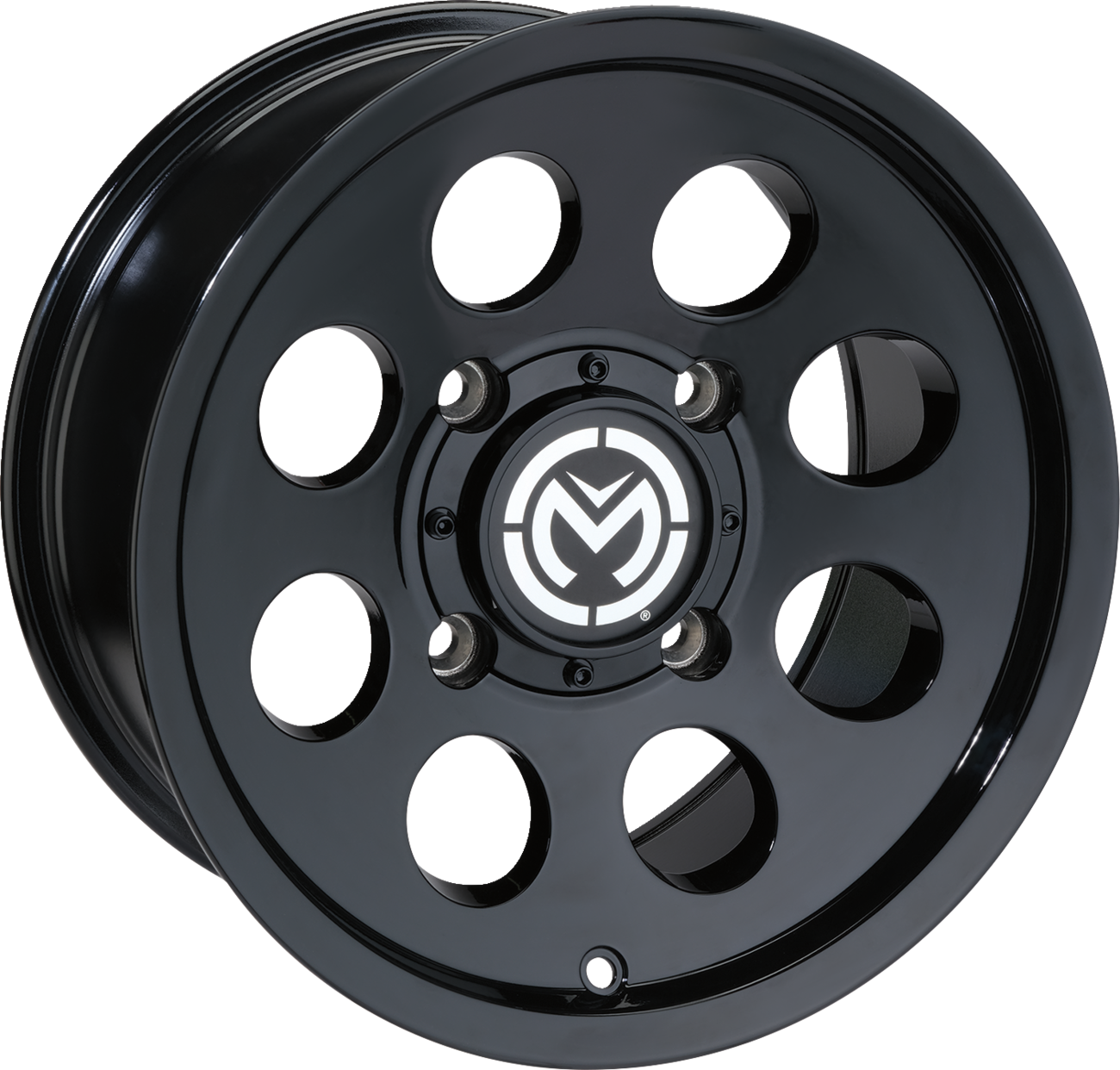 Moose Offroad 26x7 Inch Front Wheel with Black Finish - 4x110 Bolt Pattern, 4+3 Offset, Fits Jeep, Toyota, Ford Vehicles - Part Number 26MO127110GB4