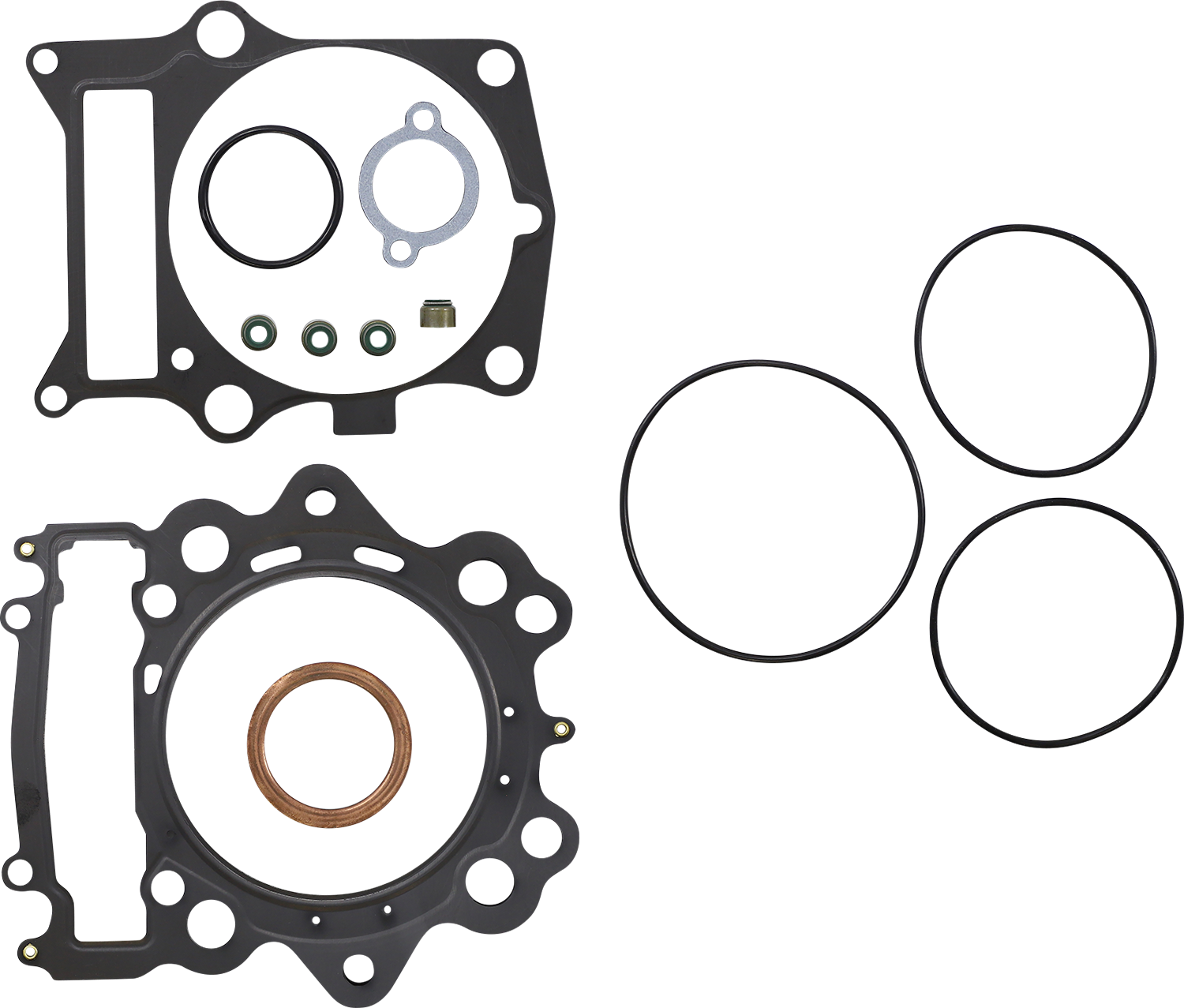 - Complete gasket set including every gasket, O-ring, and seal required for top-end rebuild