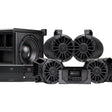 Polaris RANGER 2018-Current UTV Tuned Audio Package: Five Speaker 800 Watt STAGE 5 Audio System includes AM/FM, BT LED Source Unit controlling two amplifiers powering 4 coaxial speakers, 10 inch subwoofer in a sealed enclosure. All necessary mounting panels and harnessing are included.