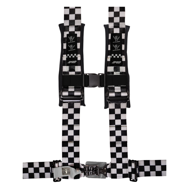 Customize your ride with this Limited Edition Checkered PRP x Shreddy harness. Whether racing, running the dunes, or crawling the Rubicon, the 4.3 Harness will hold you in tight. This 4-point harness with 3″ belts has sewn in pads for comfort, all black hardware for style and EZ adjusters on the shoulders. The EZ adjusters allow you to adjust your shoulder straps quickly and even if they are dirty or muddy. This harness also features our redesigned SURELatch & link buckle to keep you secure and easily release at any angle (even upside down). The Bolt-In Tabs on the shoulders and lap can be bolted up to almost any vehicle or wrapped around a harness bar.