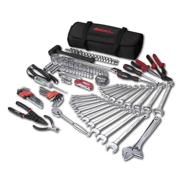 Introducing the BoxoUSA 82-Piece Combo Tool Roll, the ultimate toolkit designed for versatile use in any setting. Crafted with precision, this kit includes a curated selection of the most commonly used metric and SAE tools for maintenance and repairs. With a bonus dry bag included, your tools stay protected from weather, dust, and debris.
