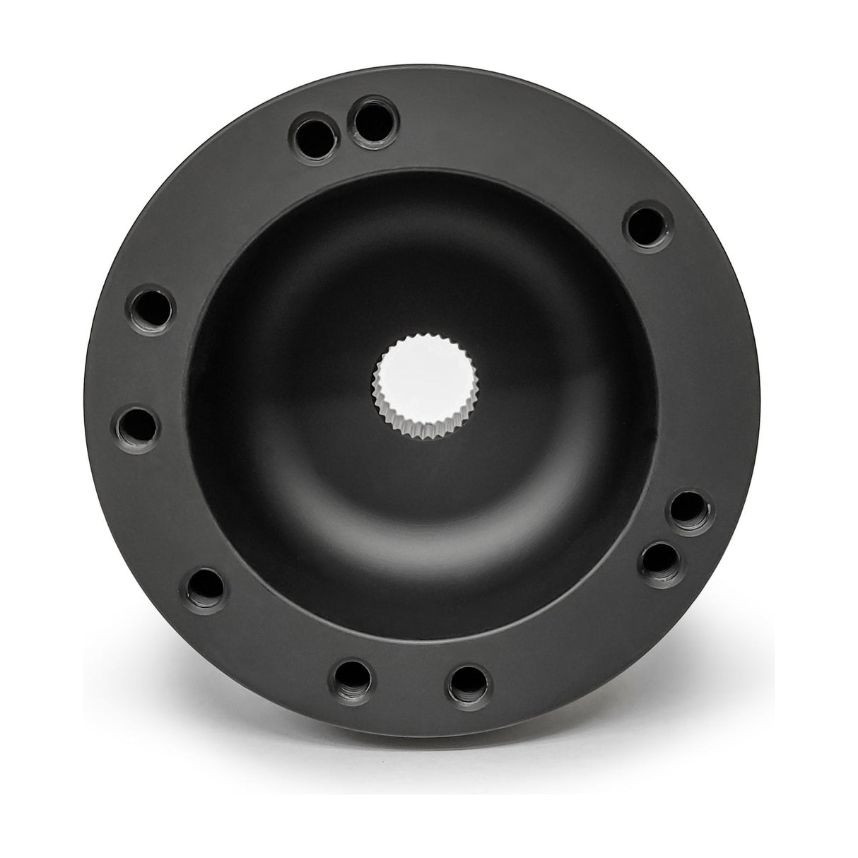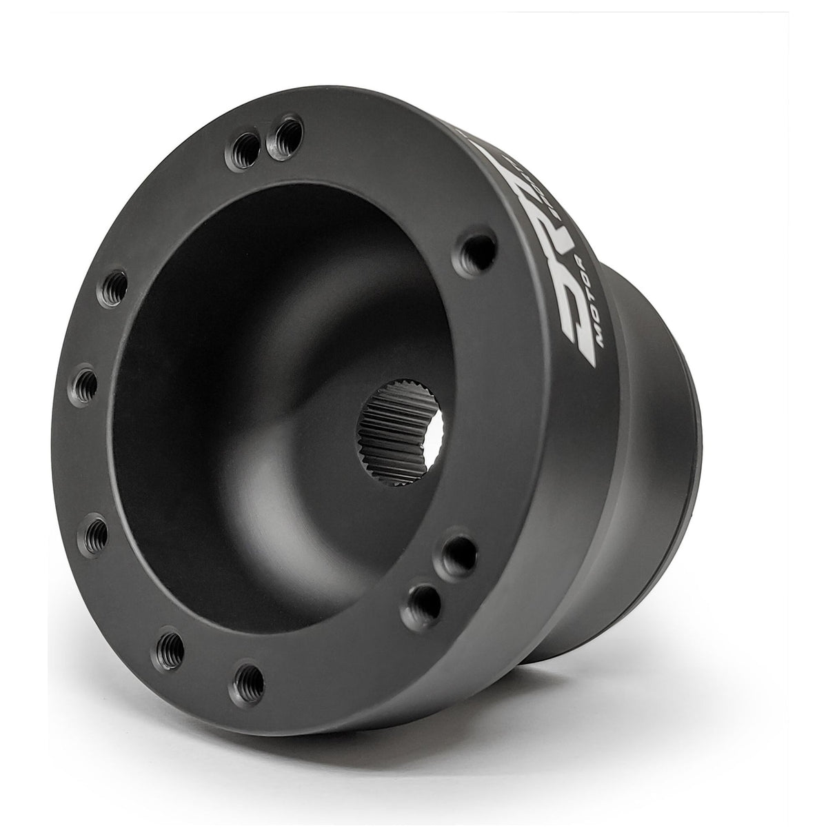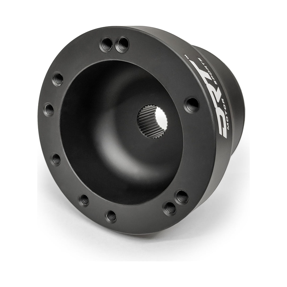 The DRT Motorsports steering wheel hub adapters are designed for use with DRT Motorsports Steering wheel line of products or can be used with a standard 5/6 bolt pattern of wheels. The can also be used in conjunction with the DRT Motorsports bolt-on quick release and others that use a standard 5/6 bolt pattern. CNC machined from a solid block of 6061 T6 aircraft grade billet aluminum, the hub combined with a steering wheel prove to be a robust upgrade from the OEM setup in function and feel. The hub is anodized matte black and finished with a laser engraved DRT Motorsports logo.