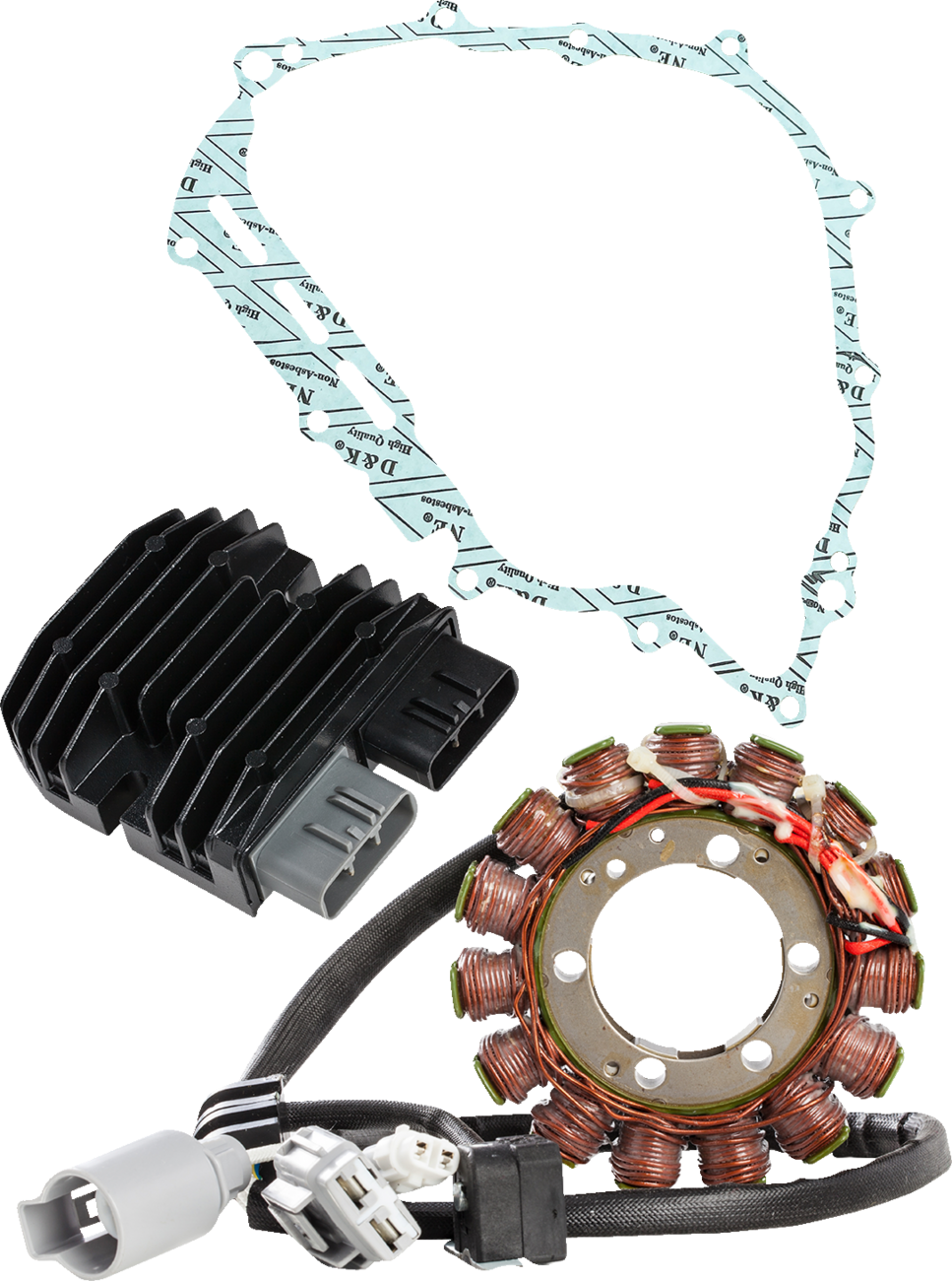 Complete charging kit designed to make the repair job as easy as possible, Kit includes:, 1 stator, 1 rectifier regulator, 1 stator gasket