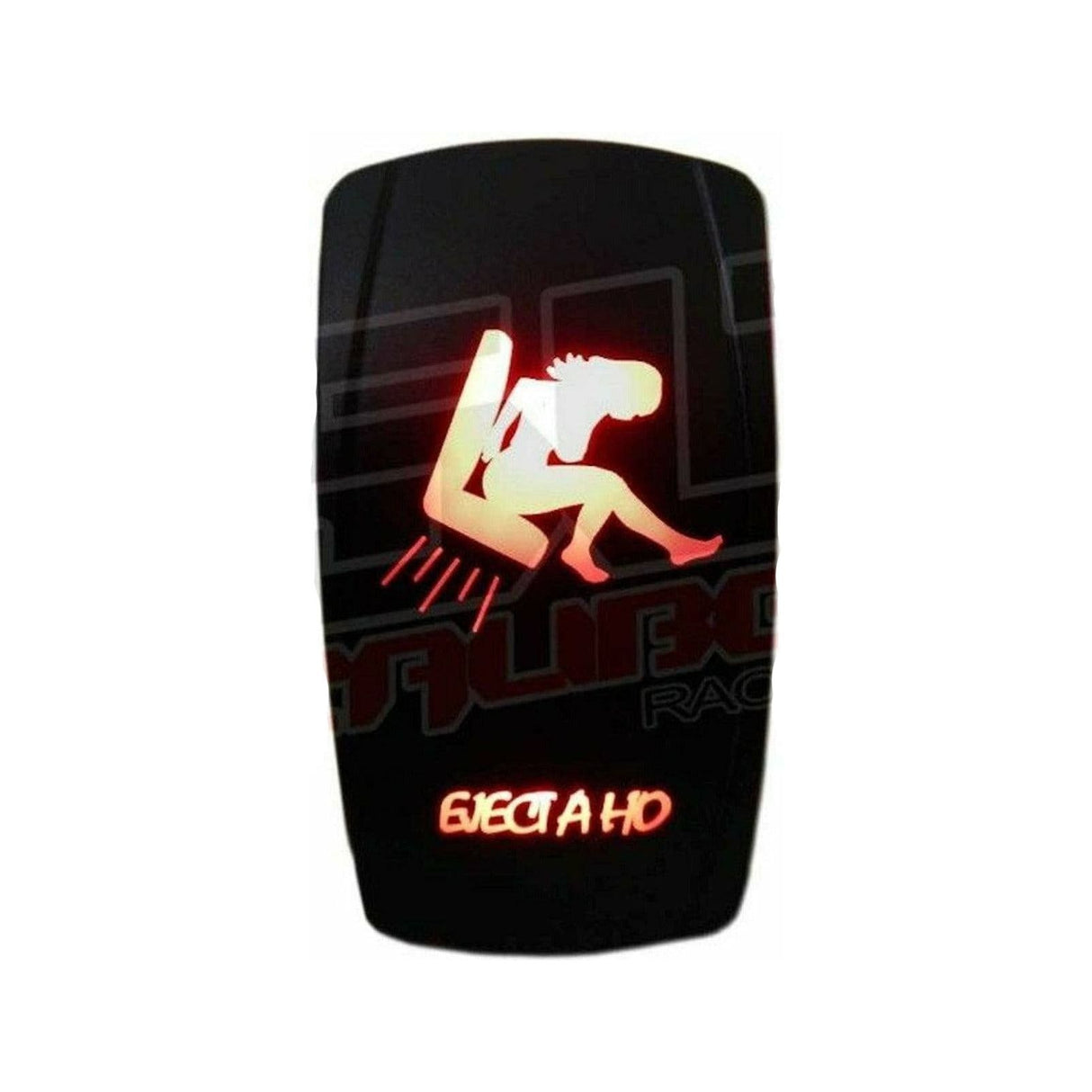 Built with heavy-duty materials, this rocker switch ensures long-lasting performance. The robust design is resistant to wear and tear, providing reliable operation over time. With a bold "Eject A Ho" graphic, this switch adds a touch of personality to your dashboard while offering practical functionality. The illuminated design ensures visibility during nighttime or low-light conditions. The rocker switch is designed for a hassle-free installation process, with standard dimensions that fit most existing switch panels.