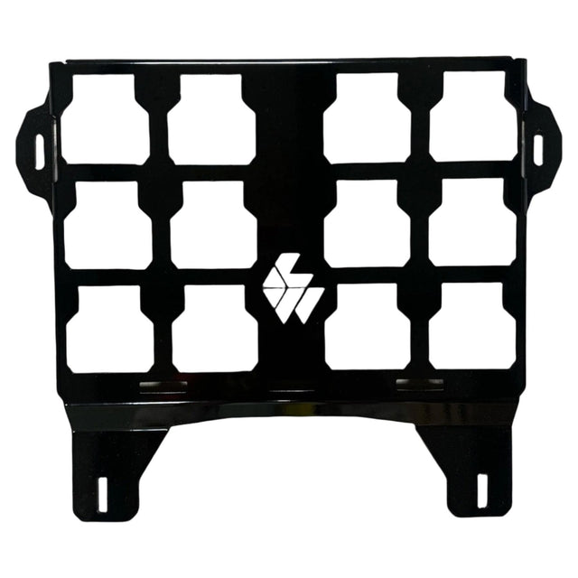 Milwaukee Packout mount plate, Works with all Polaris RZR XP 1000 / Turbo / Turbo S. Also works with Highlifter editions. Made with 10 gauge HRPO steel. Easily installed/removed with no tools using the supplied hardware. Mount is slotted for different configurations of boxes to maximize trunk room for coolers.