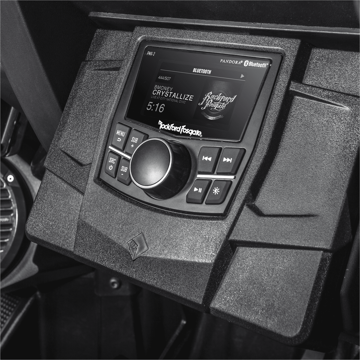 The PMX-2 features a 2.7"full color TFT display for optimum viewing - even in full sun - that is optically wet bonded to prevent any dust or moisture penetration. It is IPX6 rated and uses a water resistant rotary encoder knob with white LED button illumination and front mounted sub level controls. Additionally, with features such Pandora control capabilities and Bluetooth audio steaming with album art support1 this unit becomes a true command center of any system. 1Android devices equipped with limited functionality. Please refer to owners manual for details.