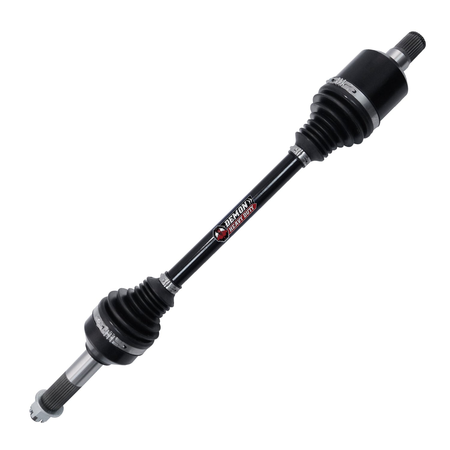 Demon Heavy Duty Axles are built using larger CV joints and shafts, paired with our proprietary dual heat treatment process, and 4340 Chromoly Steel inner CV cage gives these the axles the edge it needs for superior strength and longevity.
