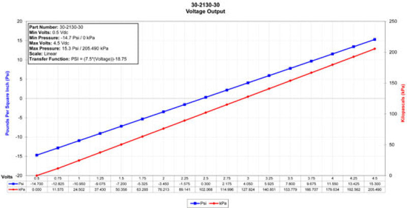 AEM offers high quality stainless steel PSIa sensors in 15 (1BAR), 30 (2BAR), 50 (3.5BAR), 75 (5BAR) and 100 (7BAR). PSIa is referenced to absolute zero. Absolute zero is the pressure measurement when all the pressure exerted by the atmosphere has been removed. The most common use for absolute pressure sensors is reading manifold pressure. PSIa pressure sensors are required if you wish to measure vacuum. A PSIa sensor will read about 14.7 PSI when the sensing element is exposed to atmospheric pressure at sea level however they can be recalibrated to read zero at atmospheric and a negative number at values less than atmospheric pressure.
