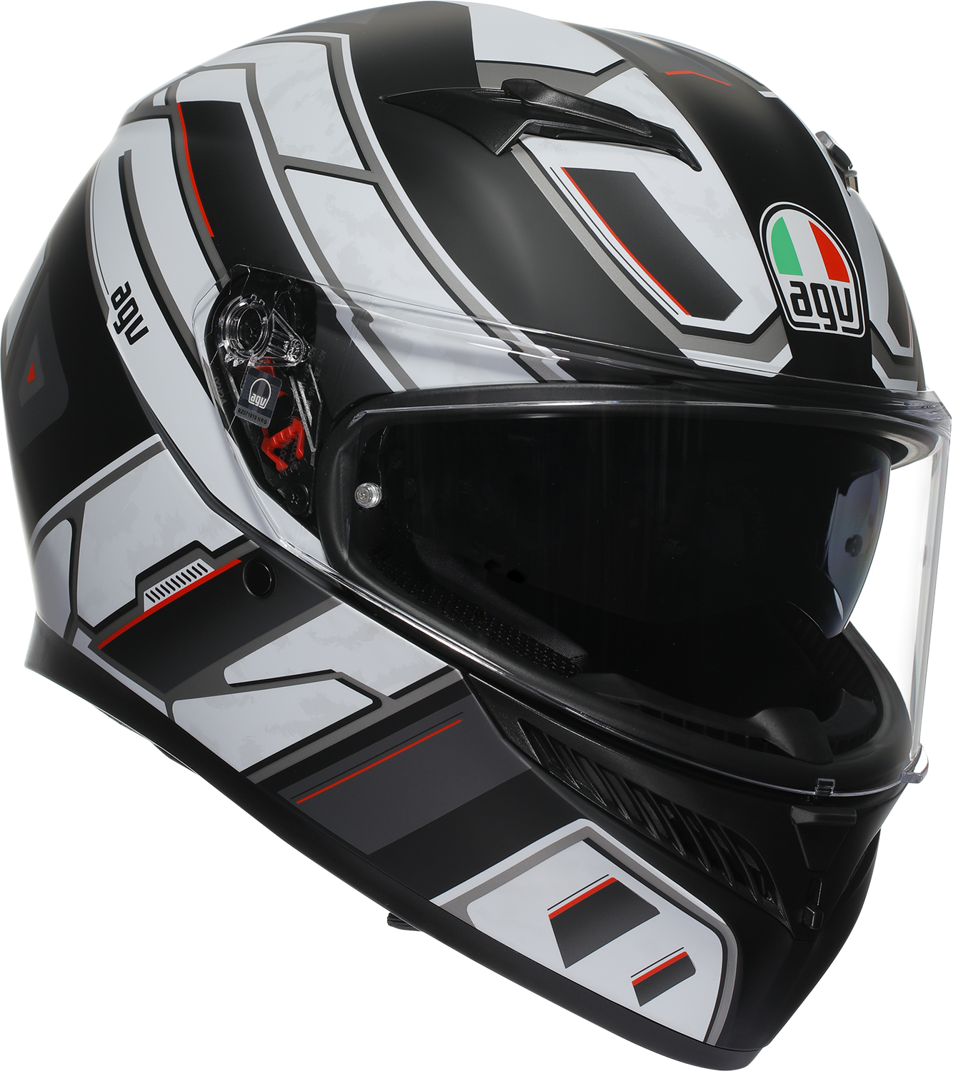 The AGV K3 Helmet Rivia in Matte Black and White offers a combination of advanced safety features and aerodynamic design, making it suitable for a wide range of riding styles including sport, touring, and daily commuting. Crafted from high resistance thermoplastic, this helmet provides durability and impact resistance while maintaining a lightweight profile at approximately 86.4 ounces, ensuring comfort during extended rides. It is designed to fit a variety of motorcycle models and sizes, including popular models in the Honda, Yamaha, Kawasaki, Suzuki, and Harley-Davidson lines, among others. The helmet's shell shape is optimized for all riding positions and includes a collarbone safe profile to enhance rider safety and comfort.