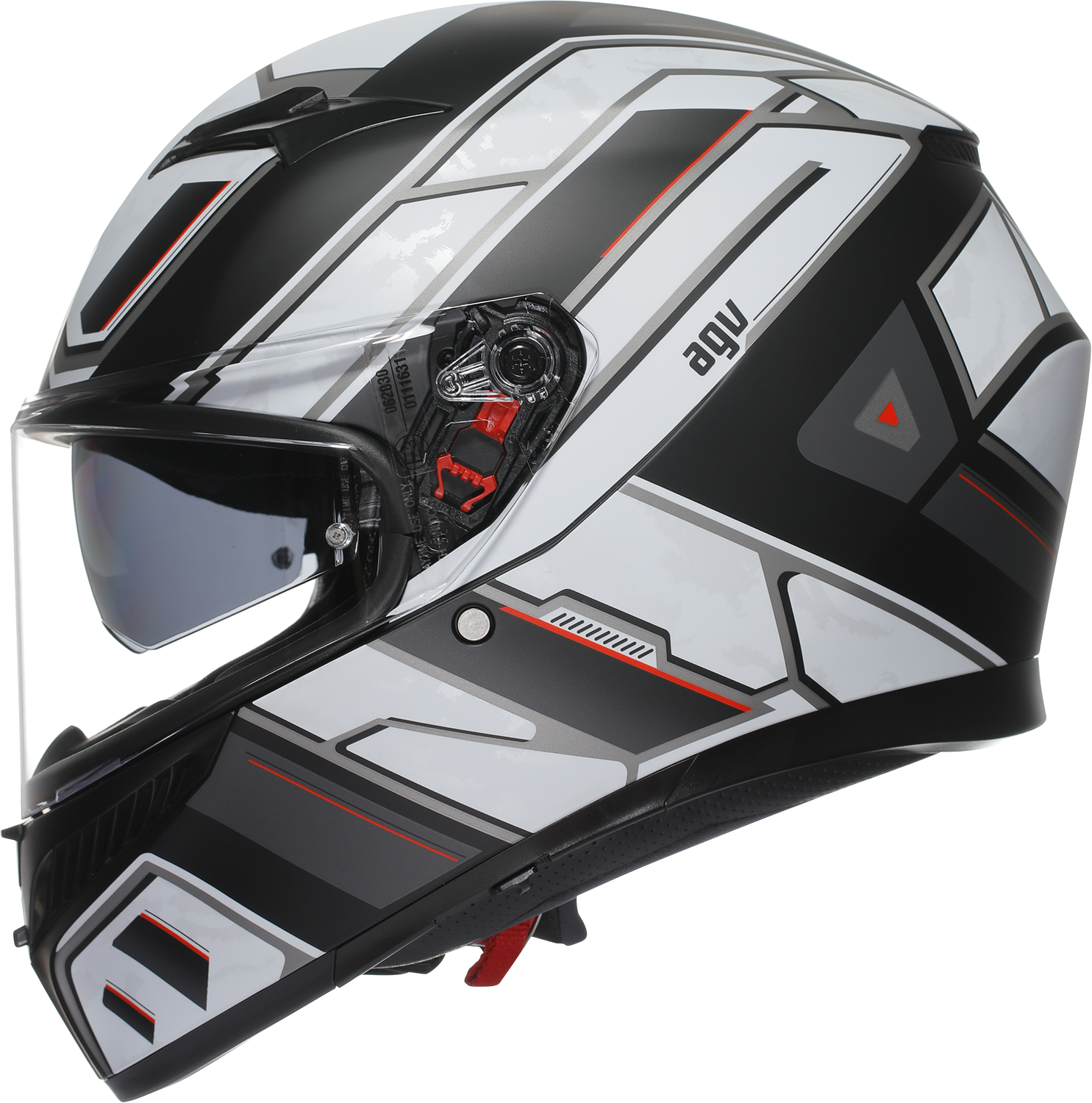 The AGV K3 Helmet Rivia in Matte Black/White is designed for motorcycle enthusiasts seeking high performance and safety on the road. Crafted from high resistance thermoplastic, this helmet offers excellent impact resistance and durability, making it suitable for a variety of riding conditions. Its aerodynamic shell shape is engineered to maximize airflow and reduce wind resistance, providing zero dynamic weight at 80 mph (130 km/h). The helmet's shell is optimized for all riding positions, ensuring comfort and stability whether you're cruising or navigating tight turns. This model is ideal for riders who demand a combination of safety, comfort, and style. It is suitable for various motorcycle types, including sport, touring, and naked bikes, fitting riders who prefer a compact and lightweight helmet with advanced features.