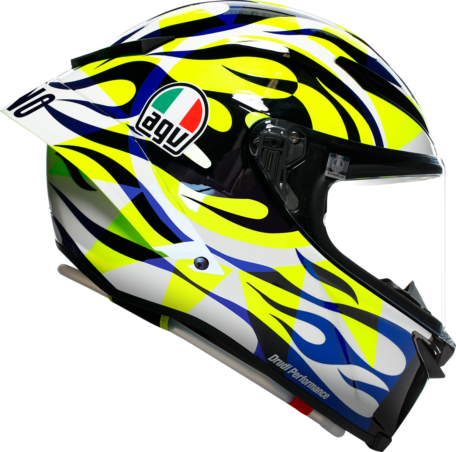 This helmet boasts superior ventilation with two rear extractors and five front vents, including metal air vents and extractors, to promote airflow and keep the rider cool during demanding rides. The aerodynamic design is complemented by a detachable PRO spoiler, which can be adjusted for racing conditions, improving stability and downforce. Accessories include a hydration system, interior customization kit with top crown pad, rear crown pad, cheek pads, tear-off kit, and vent covers, allowing riders to personalize their helmet for maximum comfort and performance. The helmet is compatible with race suits and is meticulously engineered to meet the rigorous demands of track racing.