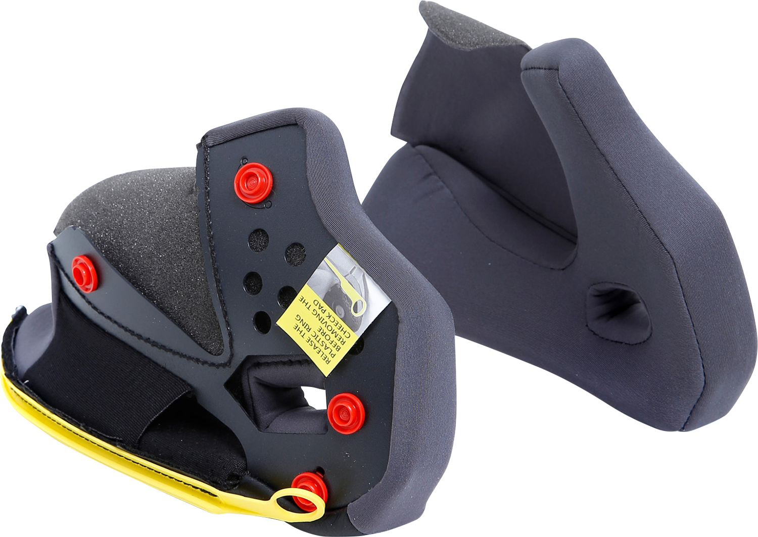 Upgrade the comfort and fit of your AGV Tourmodular helmet with these high-quality gray and black cheek pads from AGV, part number 20KIT93033629. Designed specifically for the AGV Tourmodular helmet model, these replacement pads ensure a snug and secure fit, enhancing both safety and riding experience. Crafted with durable materials, they provide long-lasting comfort, even during extended rides. The easy installation process allows for quick replacement, making maintenance simple and hassle-free, so you can spend more time on the road and less time on repairs. These cheek pads are compatible with AGV Tourmodular helmets, including various sizes, and are ideal for riders seeking to restore or customize their helmet fit and comfort. Whether you're replacing worn-out pads or upgrading your helmet's interior, these cheek pads are a perfect choice for maintaining optimal helmet performance and comfort.