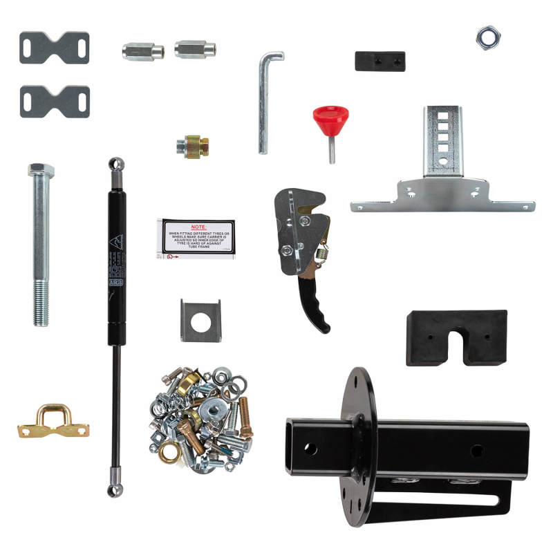• Spare tire is secured to the stud plate with a lock nut with the provision to fit a padlock to secure the stud plate to the carrier