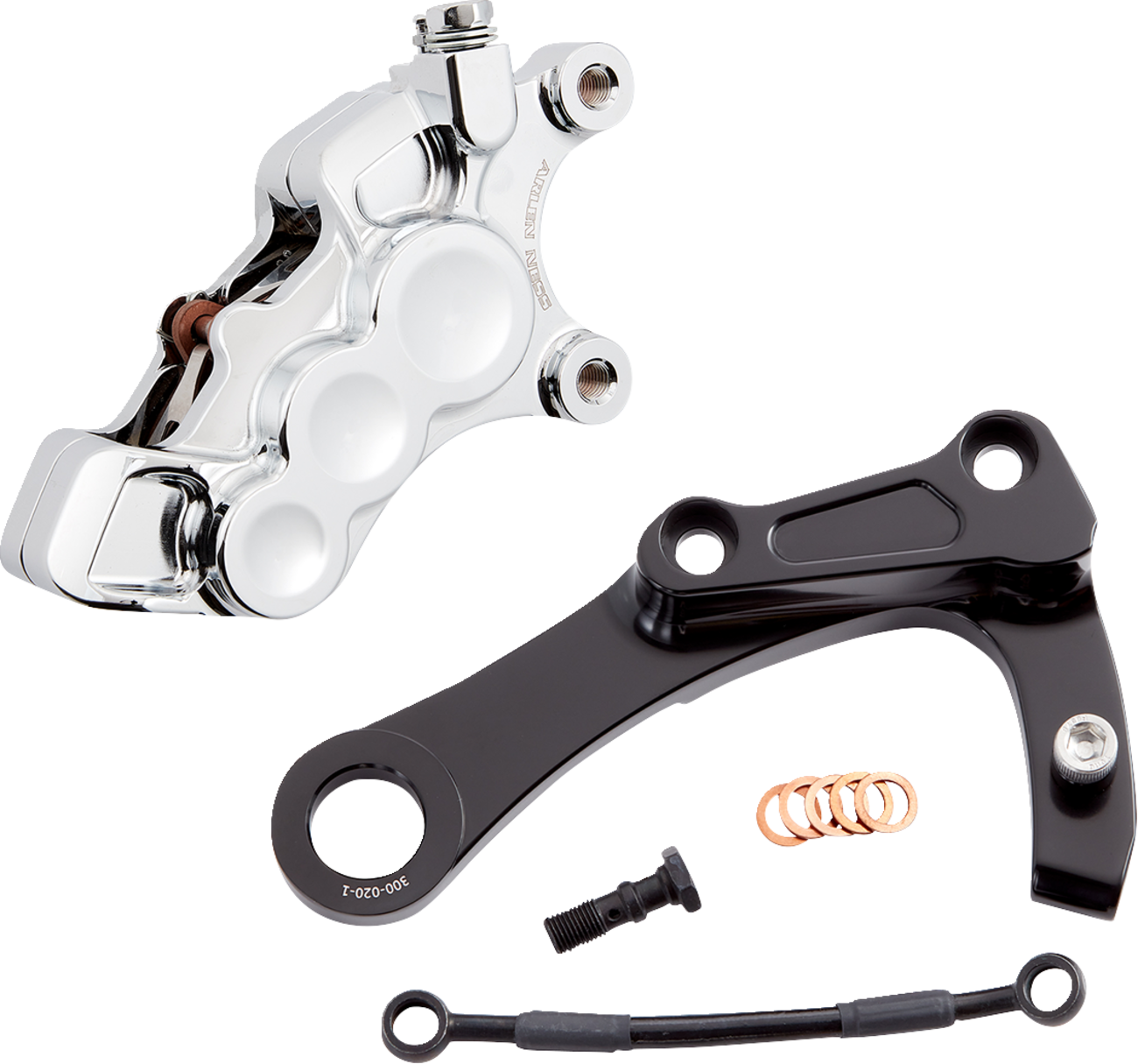 Differential-Bore Rear Brake Caliper Kit drastically improves braking performance, Innovative design allows you to keep factory brake lines eliminating the need to replace troublesome factory ABS lines (only kit on the market) , Rear bracket kit properly locates the brake caliper for use with factory diameter rear brake rotors (11.5" brake rotors), Each kit includes billet caliper bracket, brake caliper, jumper brake line, banjo bolt and any necessary installation hardware