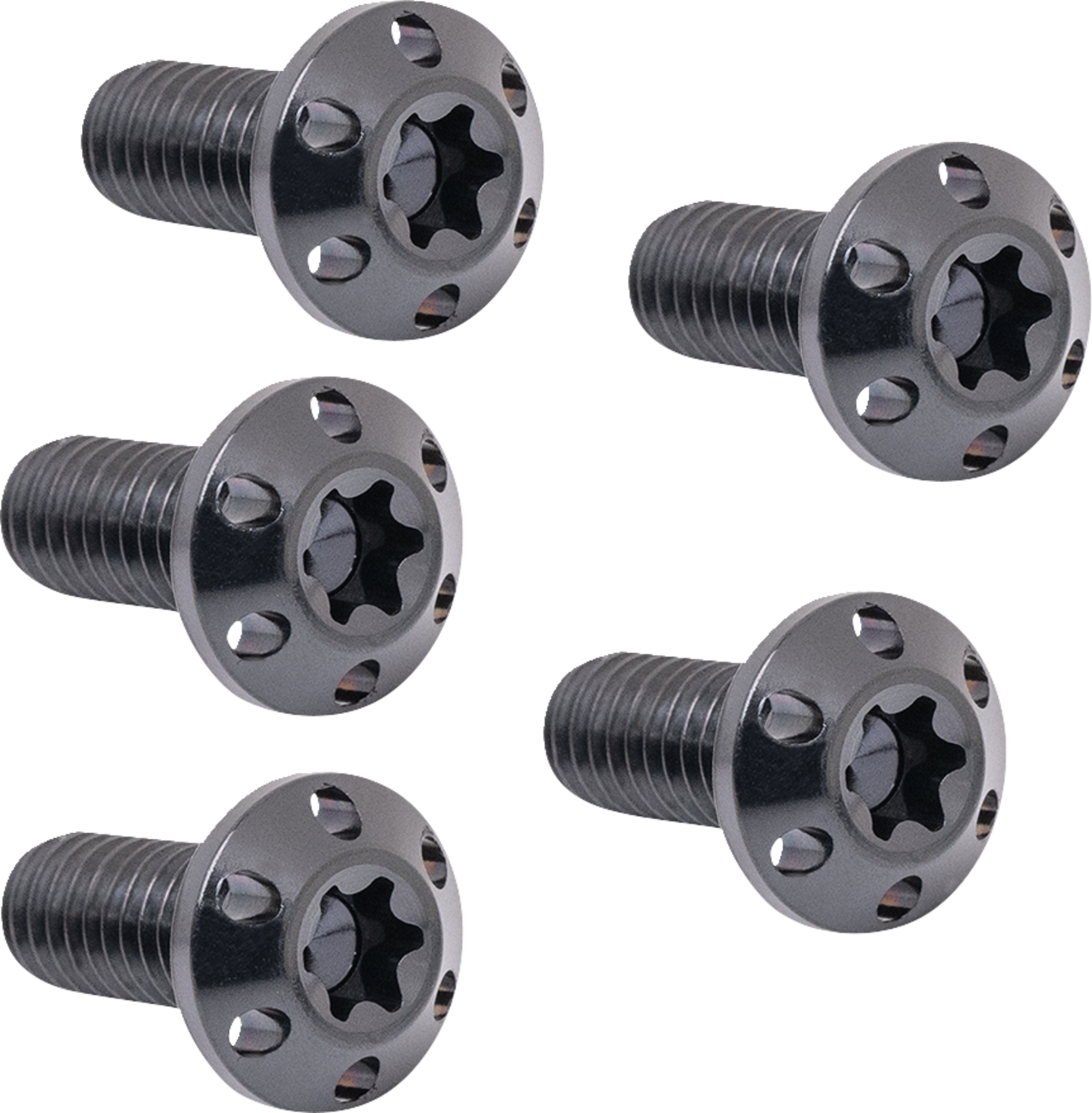 Features a CNC drilled lightning hole design & reduced weight, Each kit includes 5 titanium rotor bolts, Made from CNC machined titanium, Matching floating rotor hardware kits are also available separately for FLT models.