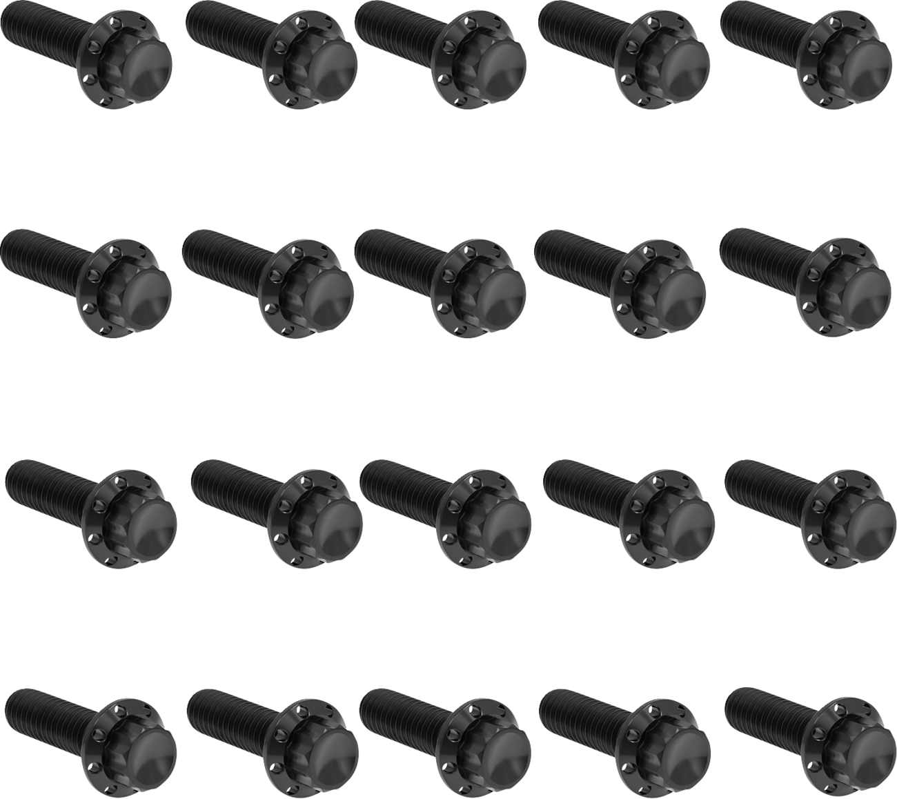 12-Point rocker box bolt kits that are CNC machined from solid titanium, Each titanium 12-Point bolt is meticulously CNC machined, featuring a spot drilled bolt head & lightning hole design on the bolt flange, Kit includes all needed bolts for the engine's front and rear rocker box covers, Reduced weight over factory and stainless steel hardware