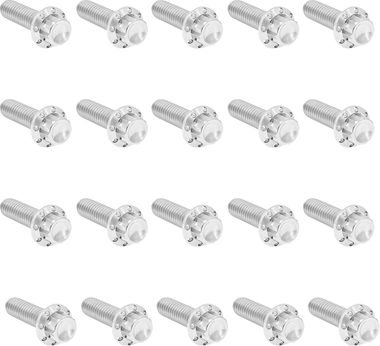 12-Point rocker box bolt kits that are CNC machined from solid titanium, Each titanium 12-Point bolt is meticulously CNC machined, featuring a spot drilled bolt head & lightning hole design on the bolt flange, Kit includes all needed bolts for the engine's front and rear rocker box covers, Reduced weight over factory and stainless steel hardware