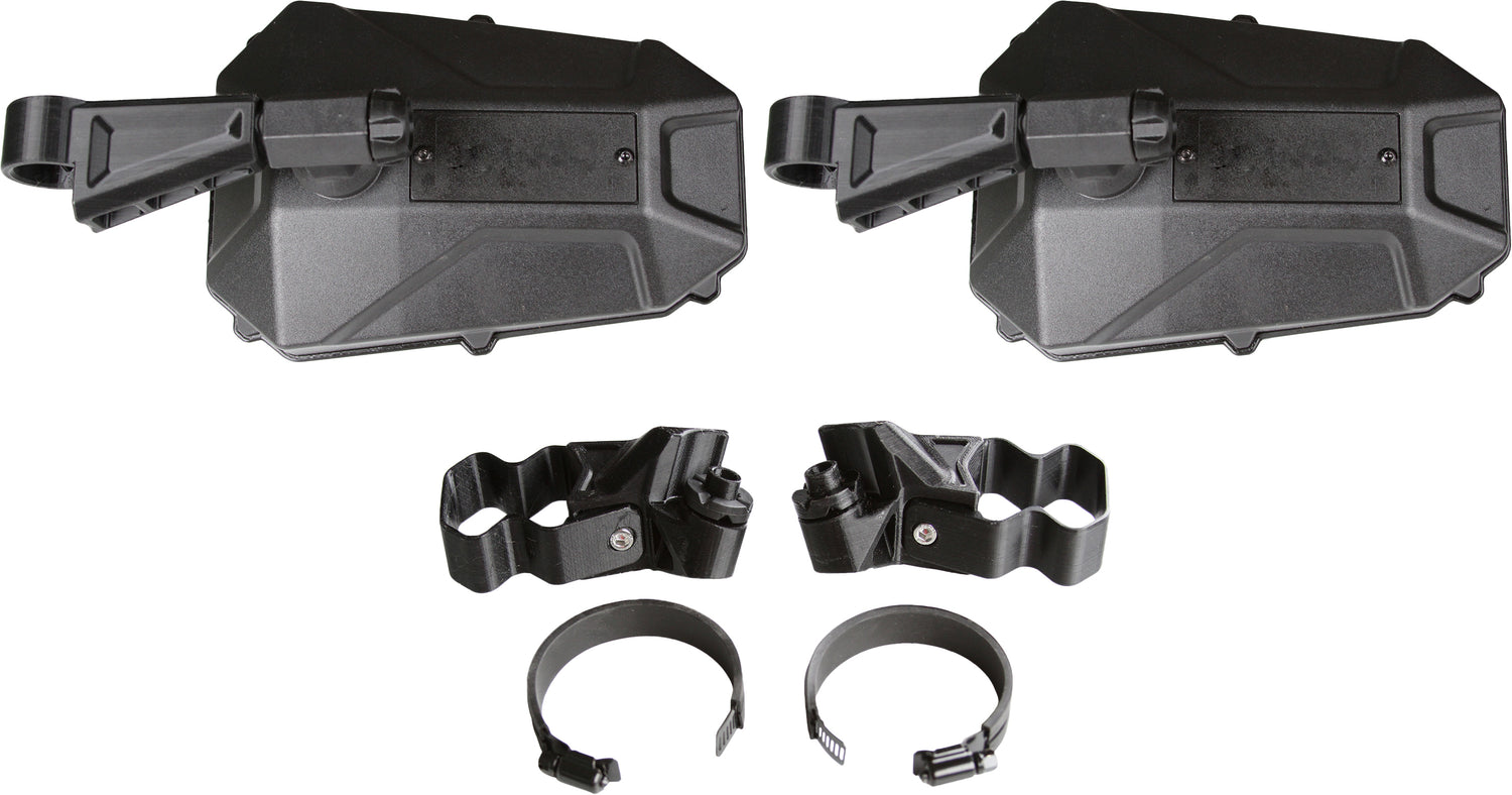 Enhance your UTV with the ATV TEK Elite Series 2 Side Mirrors, part number EMIRKIT-ES2. Designed for optimal style and functionality, these mirrors provide extensive adjustability and compatibility with various UTV models. They feature a modern design that complements the rugged aesthetic of utility terrain vehicles while offering practical benefits for daily use and off-road adventures. The mirrors are suitable for a wide range of UTVs, including models with round roll bars, ensuring versatile fitment across many brands and configurations. This package includes mounting brackets adaptable for all roll bar diameters, simplifying installation on both the left and right sides of your vehicle. The adjustable mirror head allows for high, low, and wide positioning, delivering a customized mirror view to reduce blind spots and improve safety during operation.