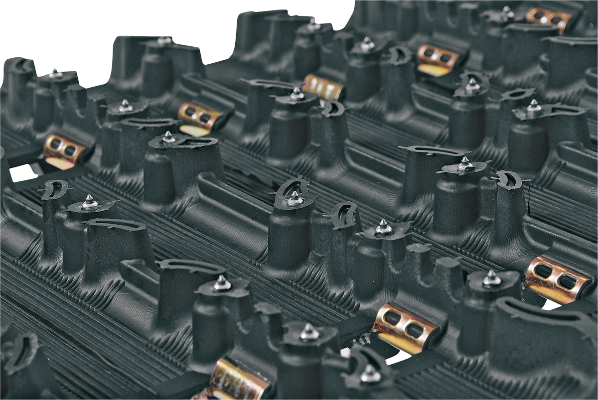 HackSaw-based lug design for good top speed and handling on hard-pack snow, Excellent choice for snowmobiles that cannot fit taller tracks, 1.063" lug height for average trail use and efficiency, Factory pre-studded with 31-point stud pattern