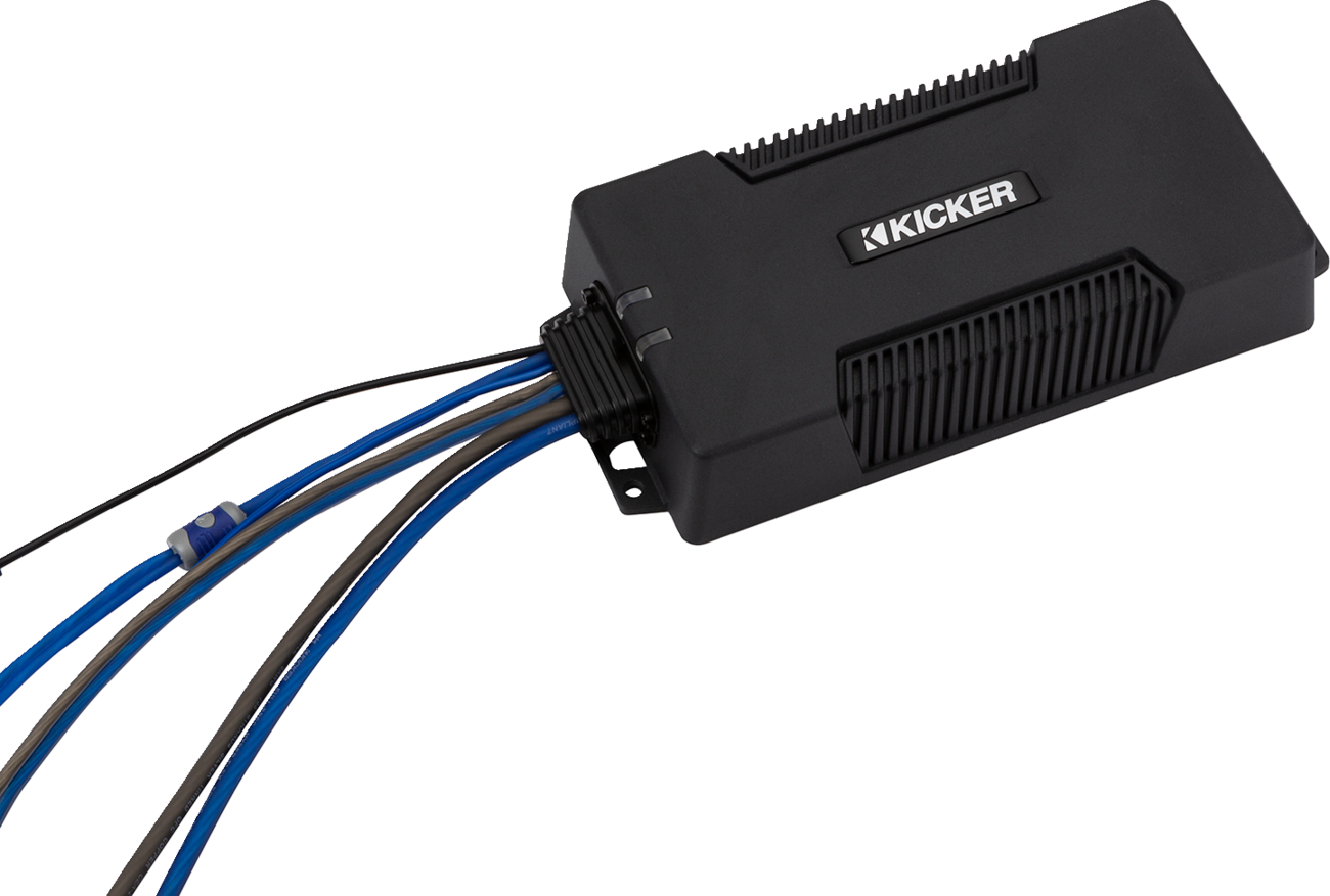 The KICKER 48PXA6001 is a high-performance mono subwoofer amplifier engineered for demanding audio applications where durability and power are essential. Featuring a waterproof design with IP66 and IP67 certifications, this amplifier is submersible up to 1 meter for 30 minutes, making it ideal for marine, off-road, and outdoor environments. Its compact form factor delivers substantial power with efficient Class-D technology, ensuring clean, powerful sound while maintaining a small footprint for versatile installation options. The amplifier offers dual turn-on modes, allowing users to select between DC offset or 12V trigger activation, providing flexible integration with various audio systems. Included inline power and ground couplers eliminate the need for soldering or crimping, simplifying installation and ensuring reliable connections. Stainless-steel mounting hardware is provided for secure attachment to a variety of surfaces. Suitable for a range of vehicles, including boats, ATVs, side-by-sides, and trucks, the KICKER 48PXA6001 delivers 600 watts of power, making it perfect for driving subwoofers in challenging environments. Whether you're upgrading your marine audio system or enhancing your off-road vehicle's sound setup, this amplifier offers durability, power, and ease of installation for an optimal audio experience.