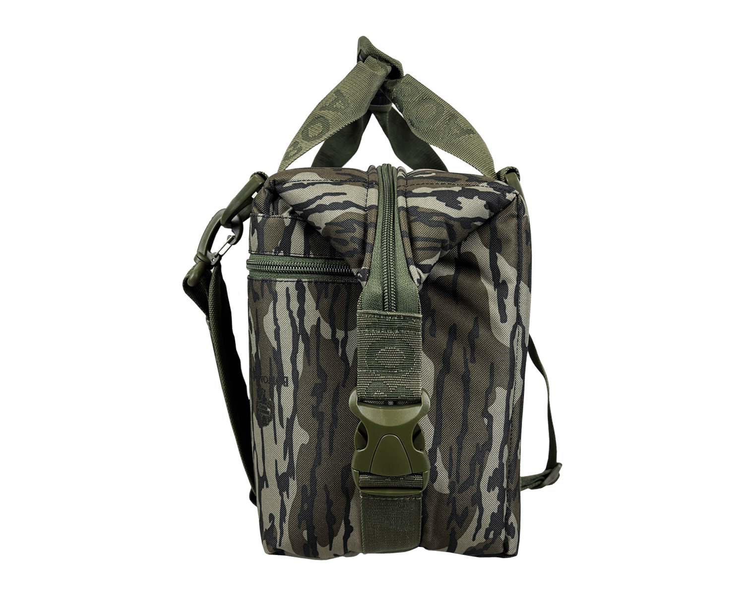 This Mossy Oak Bottomland Series 12-pack cooler is built from the original AO Canvas Series cooler, which has been an industry leader for over 30 years! The durable exterior is made from 600 denier polyester canvas, with a heavy-duty backing for exterior strength and a Scotchguard topcoat for UV protection. Insulated with ¾” thick polyurethane high-density closed-cell foam making it hard for air to blow through. Lined with a leakproof, eco-friendly welded TPU liner that has physical strength and elasticity, making it abrasion-resistant.