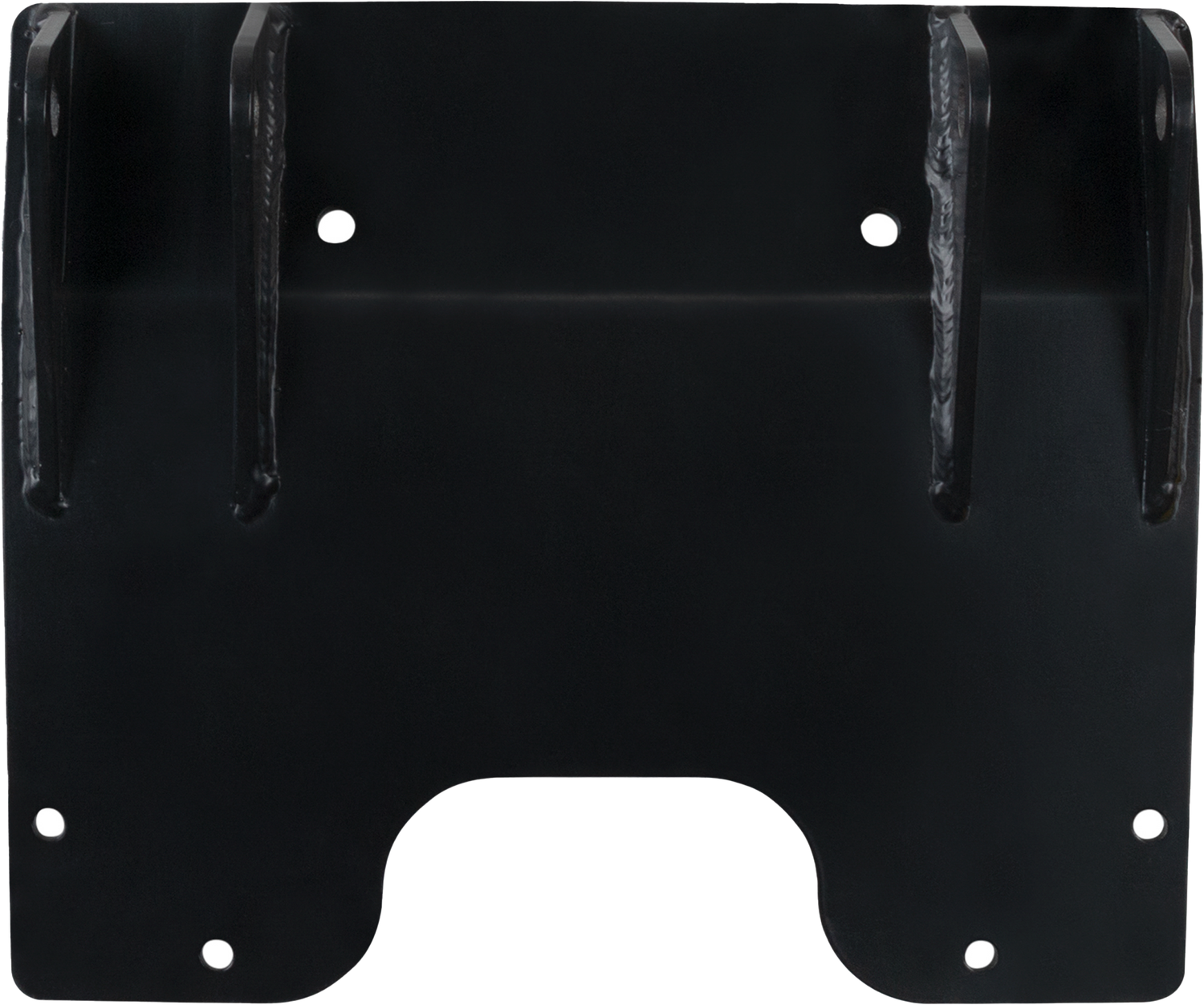 The plate is made from 3/16-inch grade 50 steel, offering strength and rigidity, while all pin tabs are crafted from 1/4-inch grade 50 steel to withstand heavy use. The tapered plow tabs are designed to reduce hang-ups when trail riding, making maneuverability smoother and safer. The entire assembly is powder coated in black, adding resistance to corrosion and abrasions for long-lasting durability.