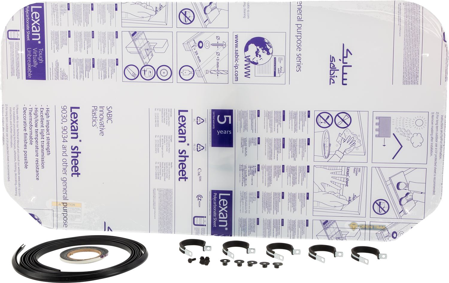 - Full rear windshield made with ultra-durable 0.177-inch Makrolon(r) Polycarbonate for long-lasting, high-strength protection and clear view.