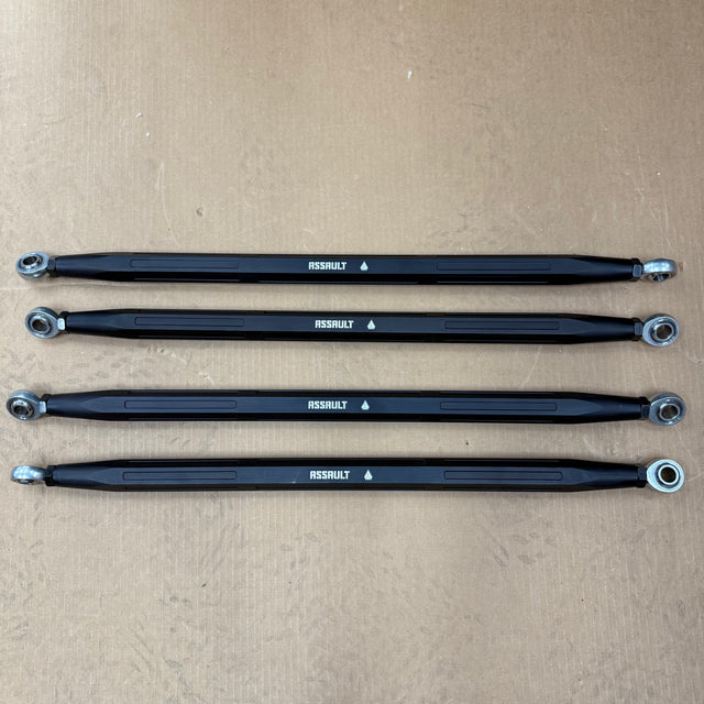 Assault Industries heavy duty radius rods are a direct bolt-on long travel application. Longer axles will be required to complete the installation. Get the most rugged radius rods available for Polaris RZR Pro XP!
