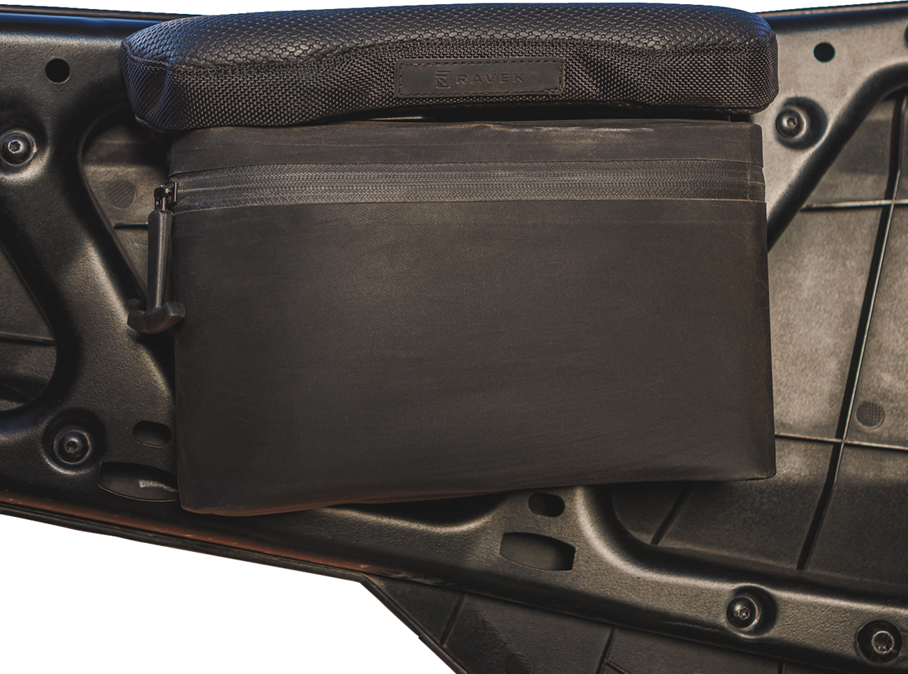 TPU sonic welded pouches mount cleanly under the armrest pad, Perfect for riders who installed door bags and want armrests too but don't want to give up door storage, Semi-rigid pouches keep shape even when empty, Waterproof storage with heavy-duty zippers for drivers and passengers, Simple installation