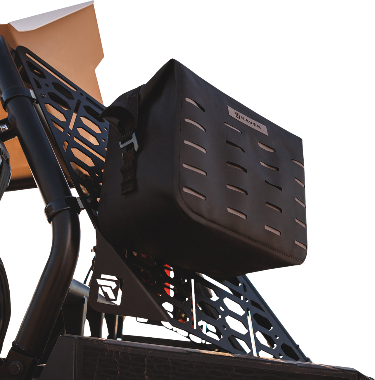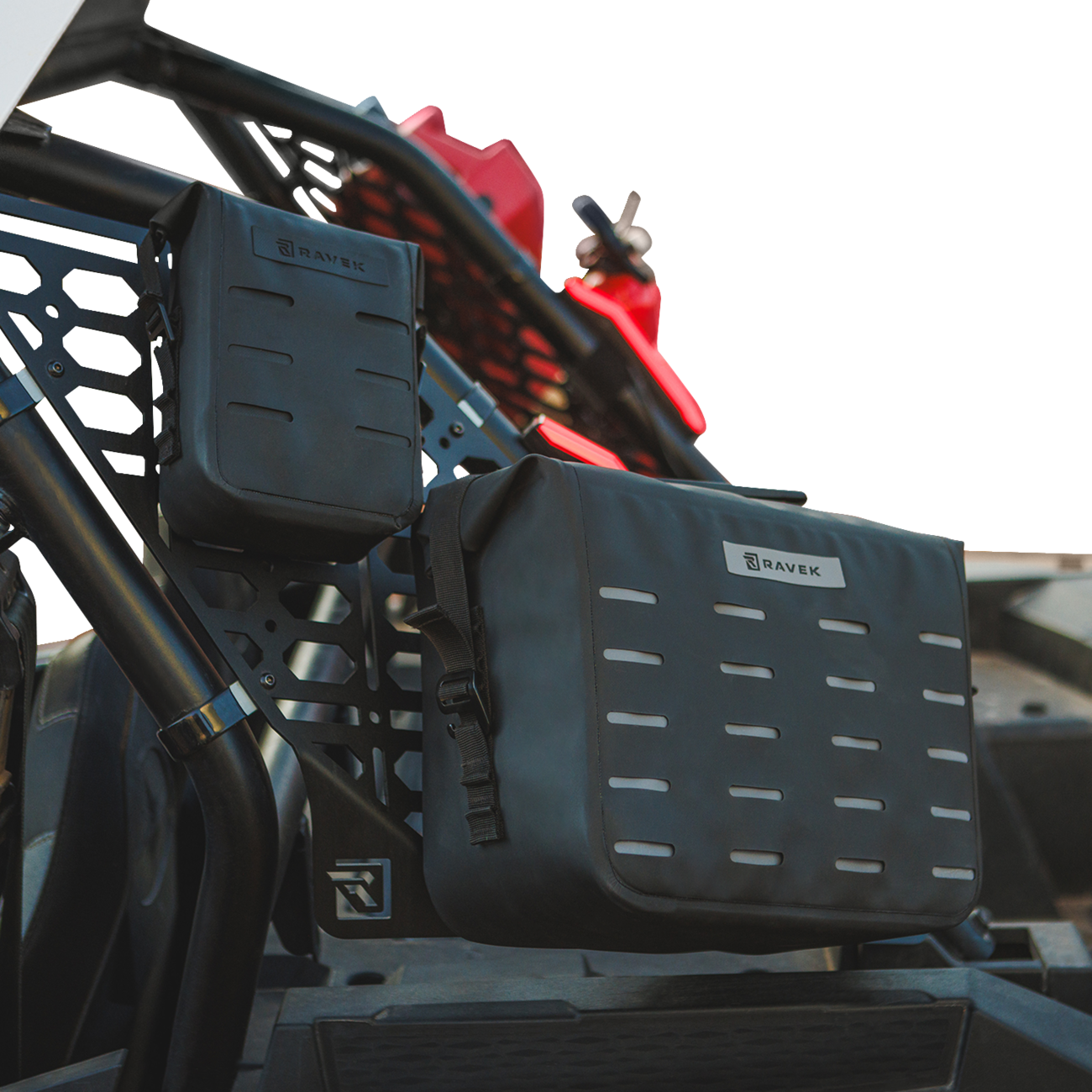 100% waterproof and dustproof zipperless storage bags designed for exposure to harsh conditions, MOLLE-mountable bags are made of TPU and sonic welded with a semi-rigid interior to keep the shape even when empty, Attach with custom luggage clips then cinched down for a precise, secure fit, Simple, quick-attach installation, Easy to clean TPU handles sun exposure well, Mesh lining can be used to cinch down valuables for quick accesss