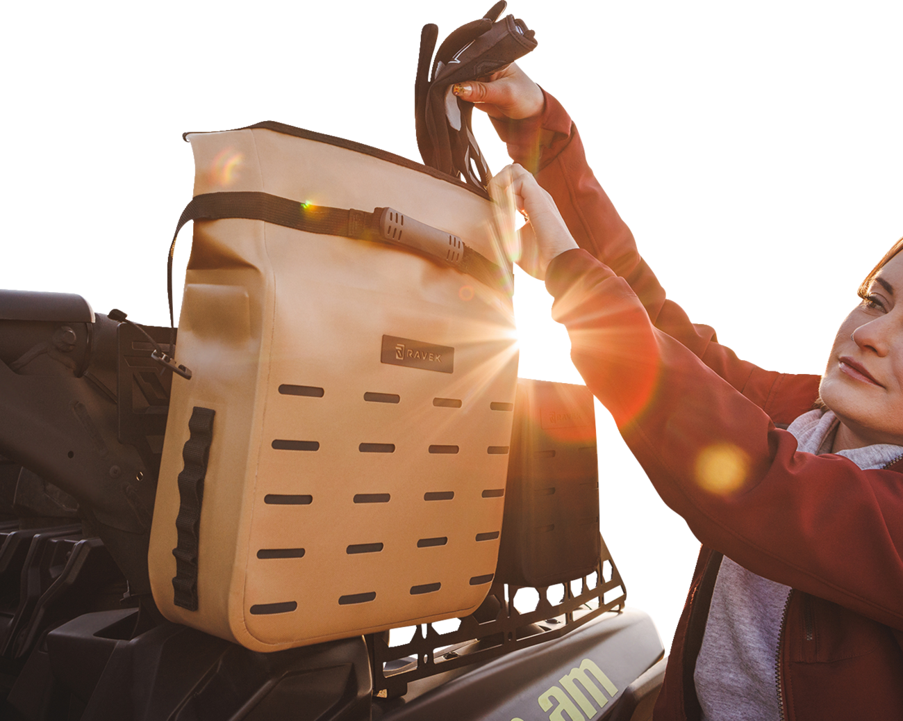 100% waterproof and dustproof zipperless storage bags designed for exposure to harsh conditions, MOLLE-mountable bags are made of TPU and sonic welded with a semi-rigid interior to keep the shape even when empty, Attach with custom luggage clips then cinched down for a precise, secure fit, Simple, quick-attach installation, Easy to clean TPU handles sun exposure well, Mesh lining can be used to cinch down valuables for quick accesss