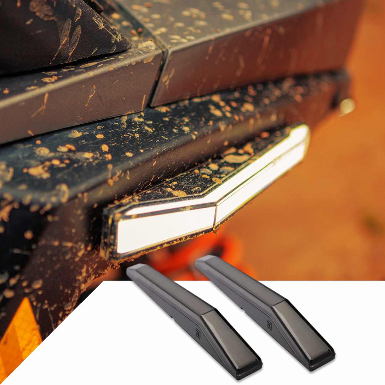 Brighter than Polaris OEM running lights, 54 LEDs in each light, with perfectly diffused light output (no LED diode “hot spots”), Heavy-duty, impact-ready and scratch-resistant polycarbonate lenses, Aluminum heat-sink frame, Extreme lighting efficiency: 2 A per pair , Mount to any flat surface or 1-1/4”-2-1/2” roll bar, including bumpers, Plug-and-Play harness with no drilling required, IP67 rated, waterproof and dustproof lights